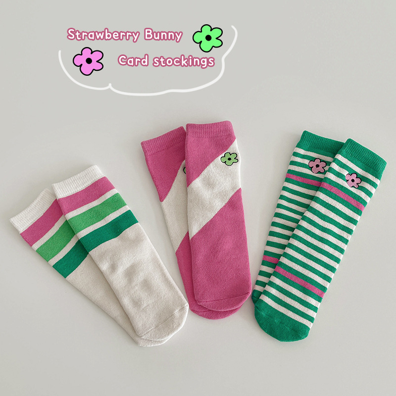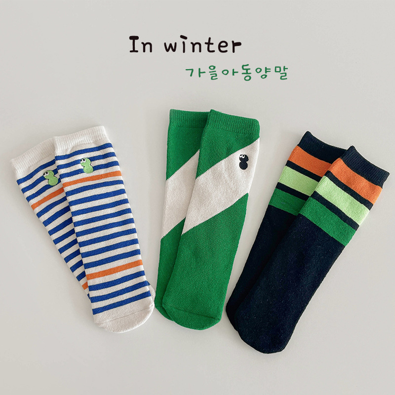 3 쌍-어린이 양말 2022 겨울 스트라이프 컬러 매칭 양말 귀여운 만화 두꺼운 테리 어린이 양말 면스토어 가기
