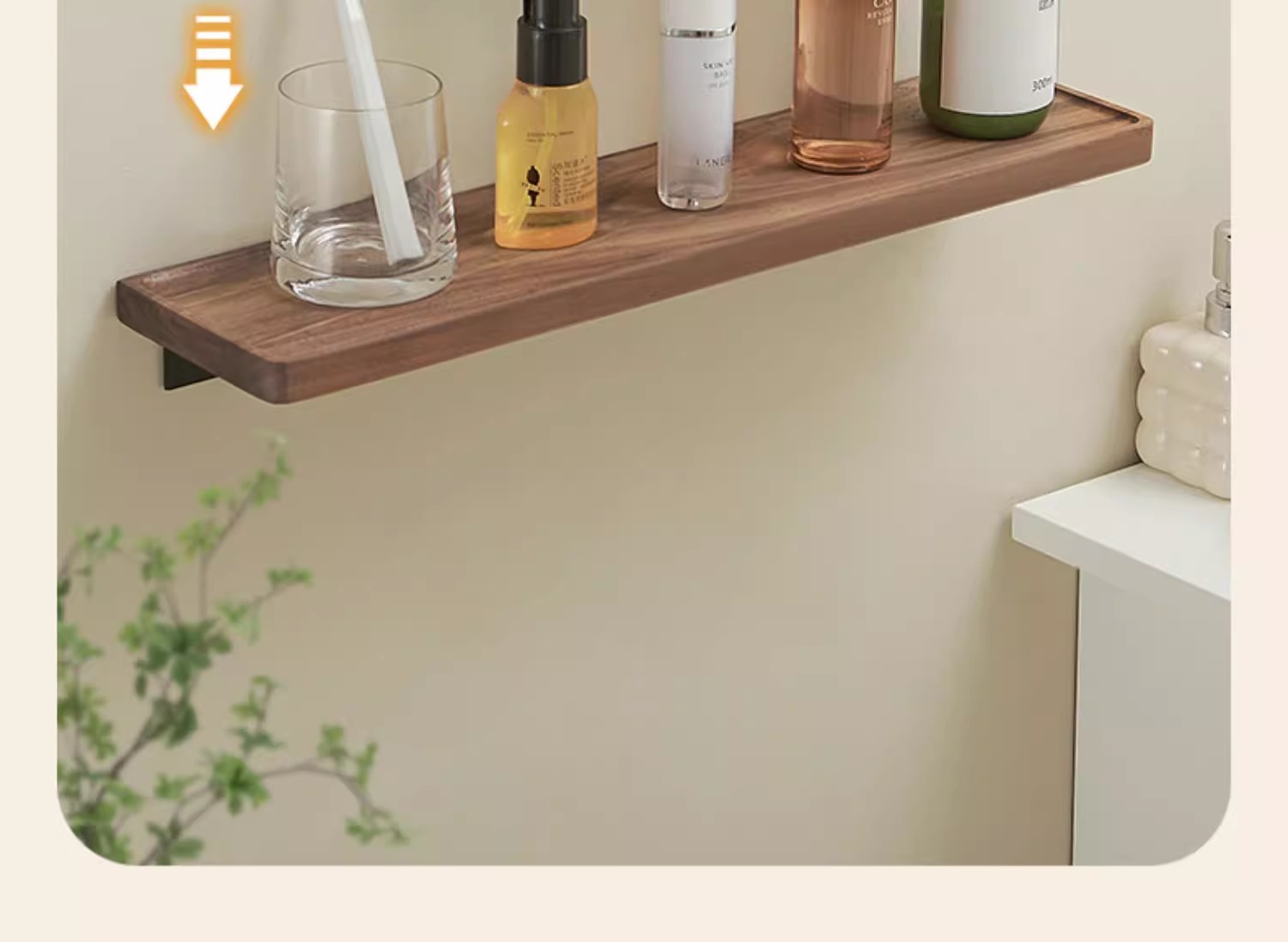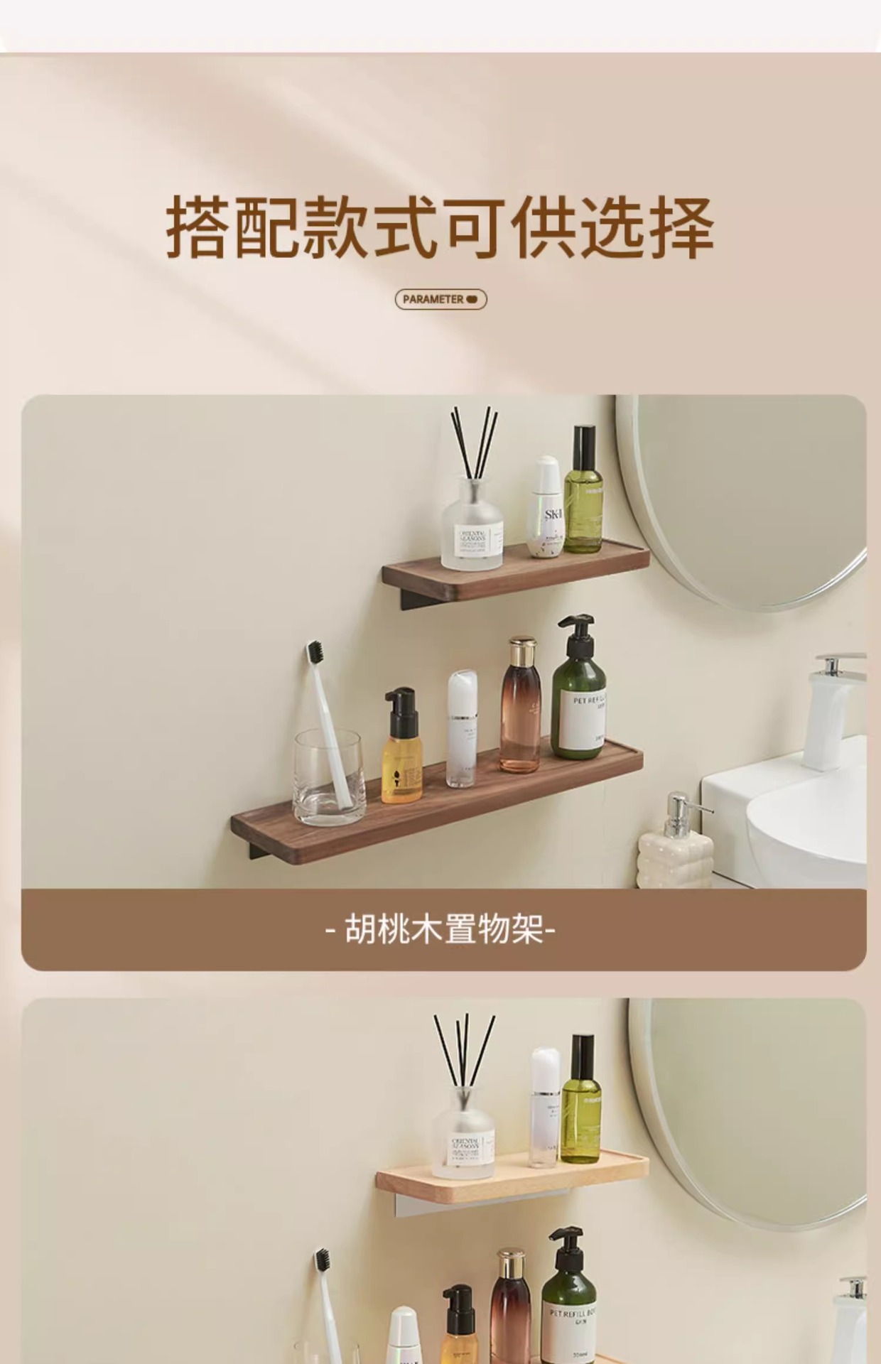 호두 스토리지 랙 새로운 중국 스타일 가벼운 럭셔리 욕실 솔리드 우드 보드 라미네이트 벽 교수형 보관 화장실 보드