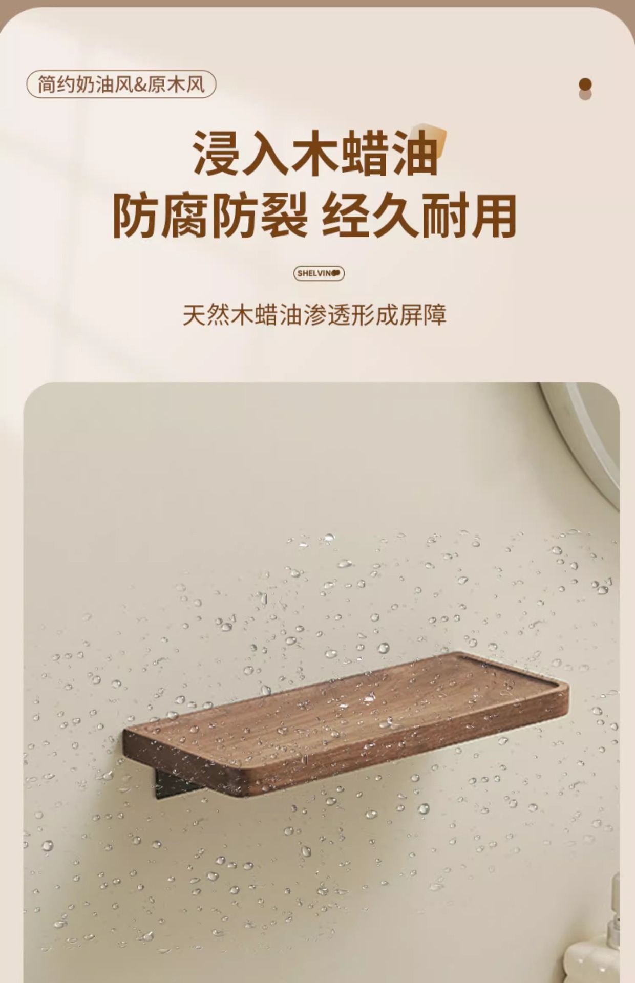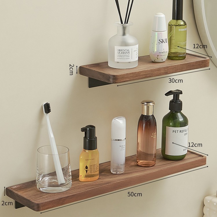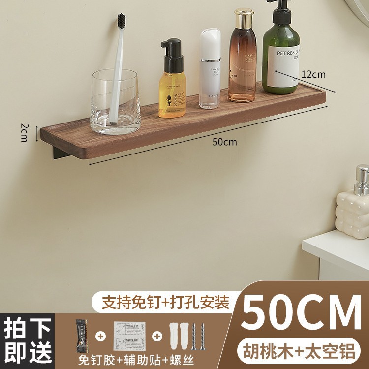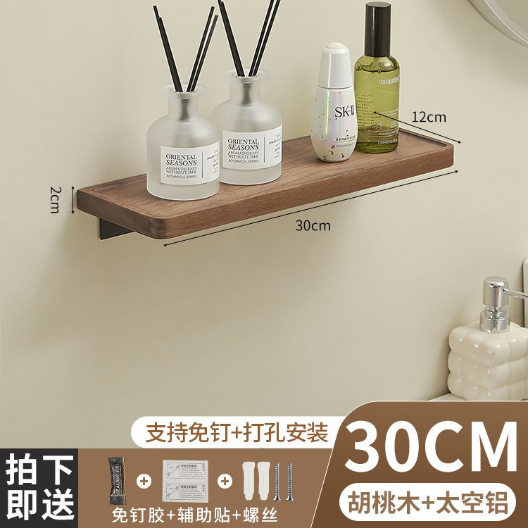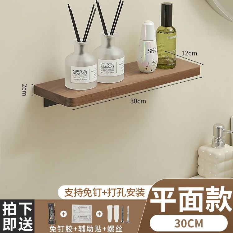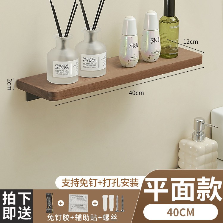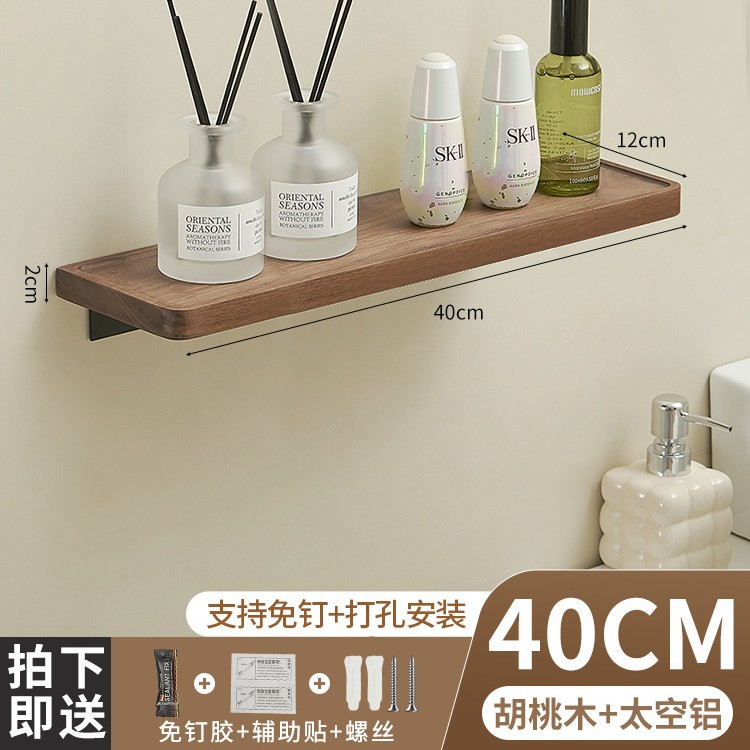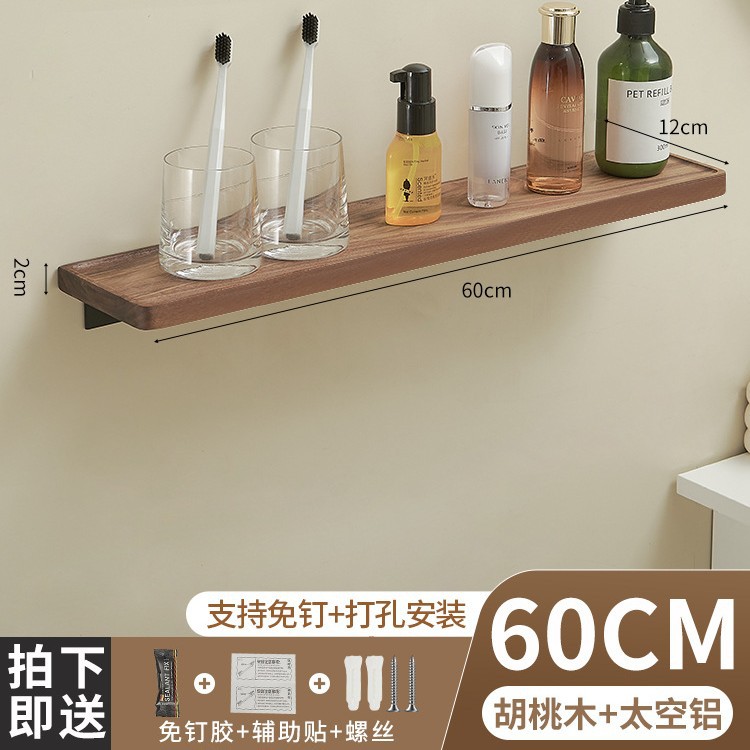 호두 스토리지 랙 새로운 중국 스타일 가벼운 럭셔리 욕실 솔리드 우드 보드 라미네이트 벽 교수형 보관 화장실 보드스토어 가기