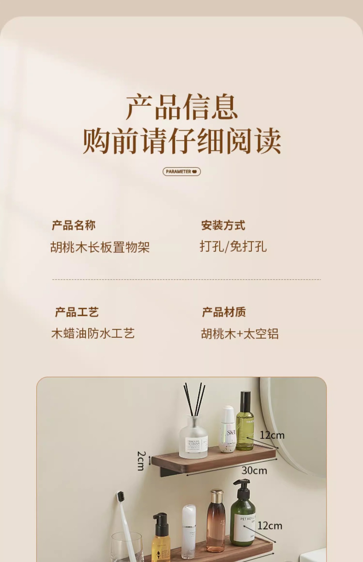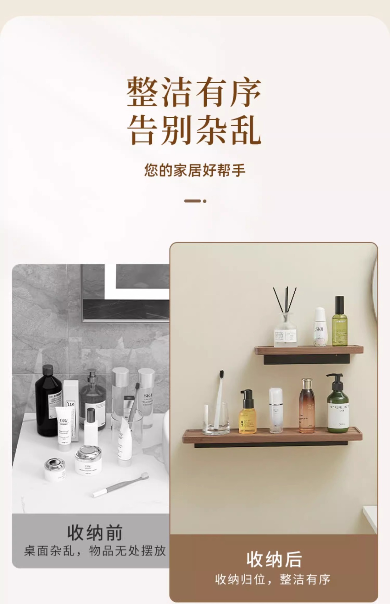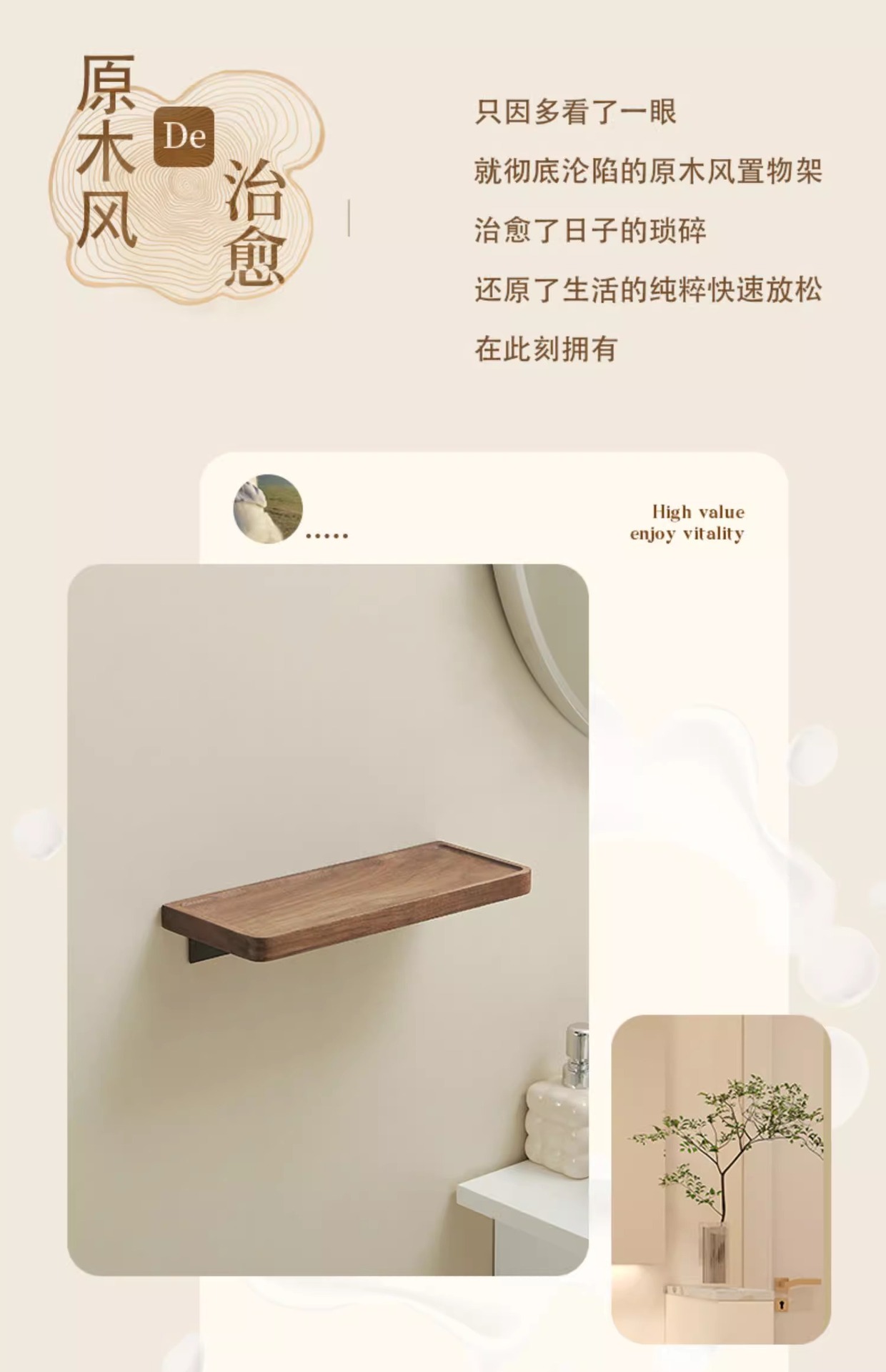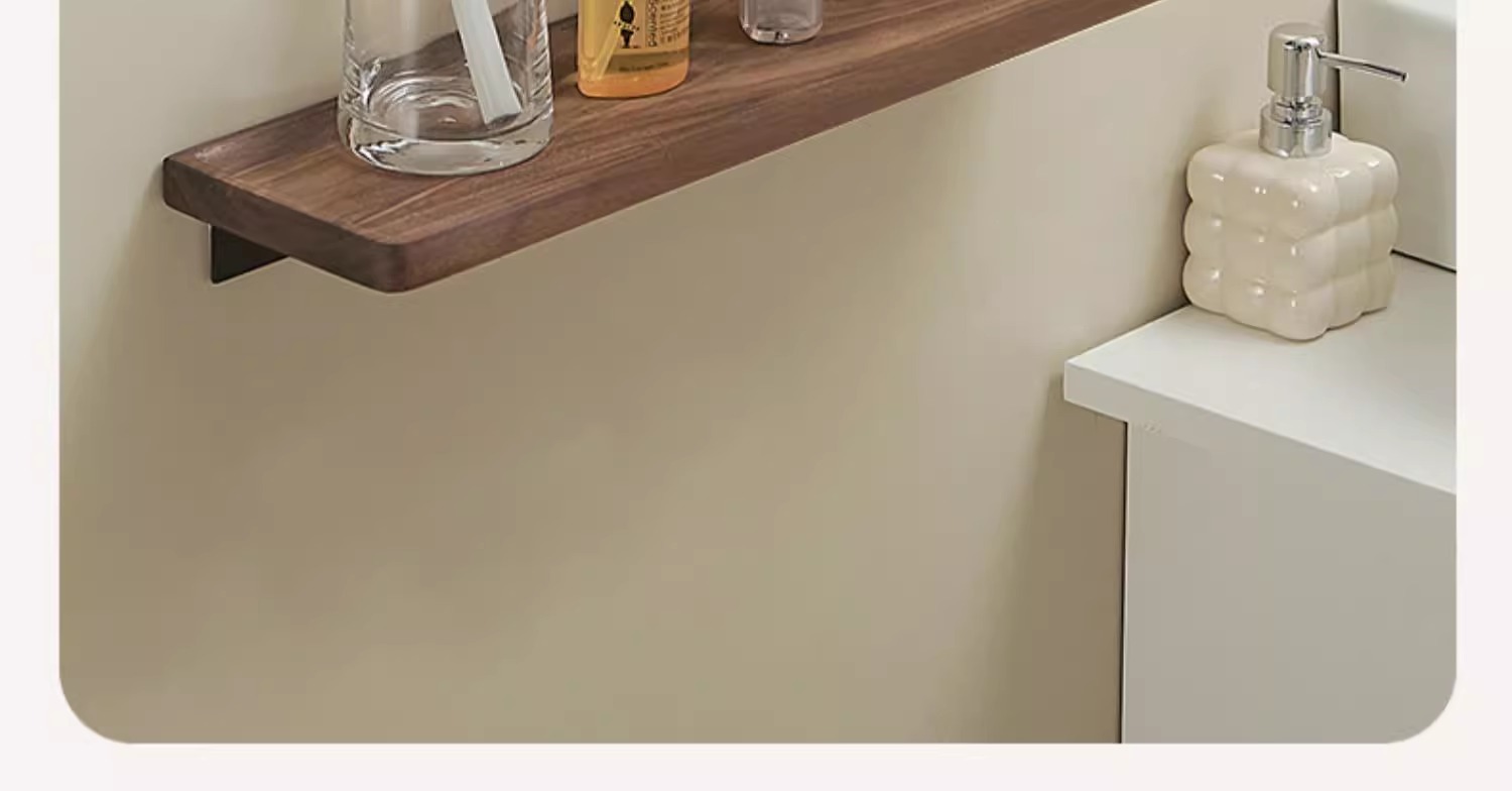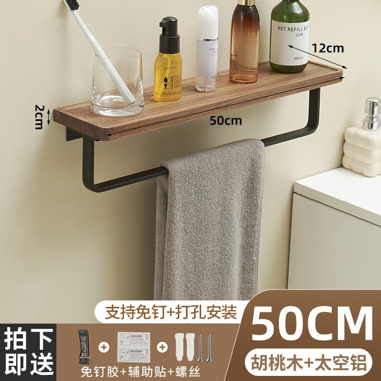 호두 스토리지 랙 새로운 중국 스타일 가벼운 럭셔리 욕실 솔리드 우드 보드 라미네이트 벽 교수형 보관 화장실 보드스토어 가기