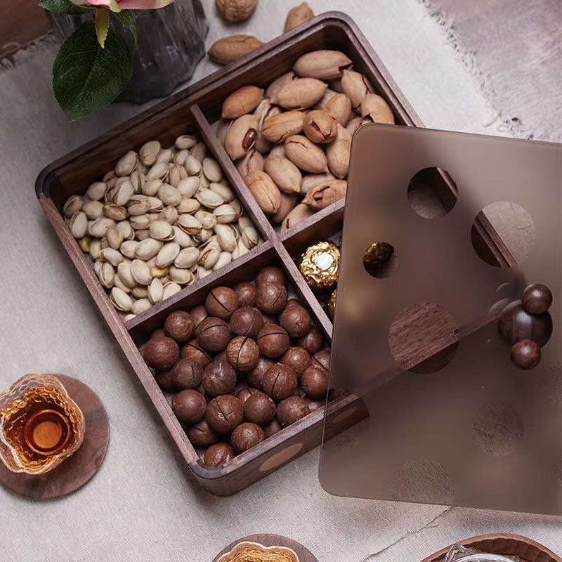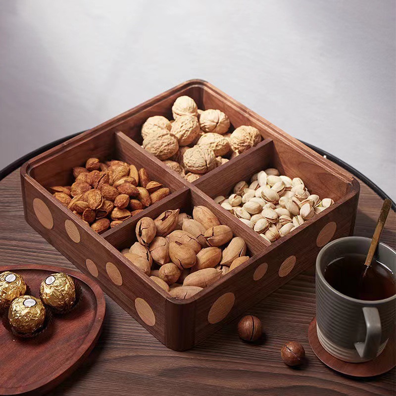 검은 호두 말린 과일 상자 가구 거실 일본식 대형 단단한 나무 너트 상자 뚜껑 스낵 상자 사탕 상자스토어 가기