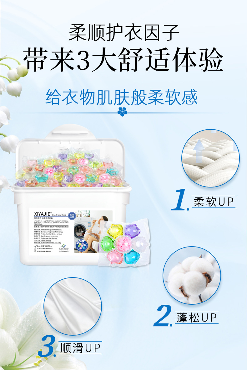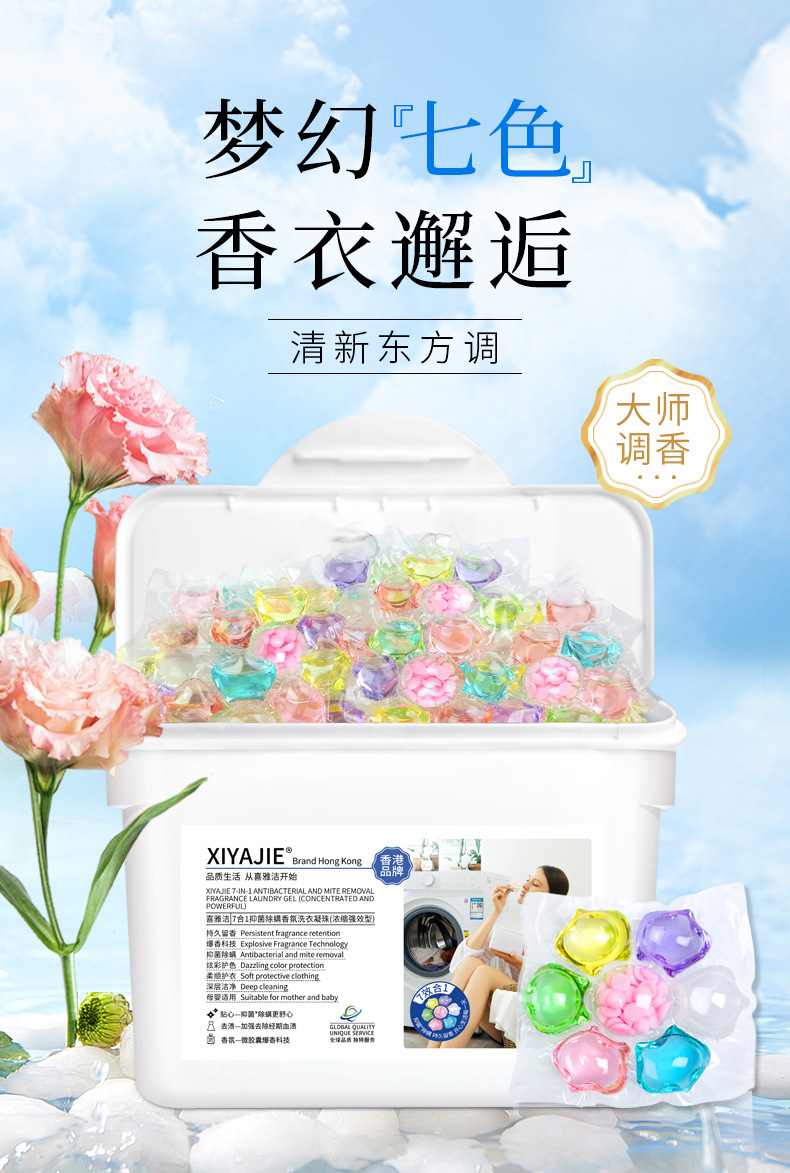Xiyajie 세븐-캐비티 세탁 비즈 올인원 깨끗하고 호환되는 세탁 비즈 딥 클리닝 농축 세탁 볼스토어 가기