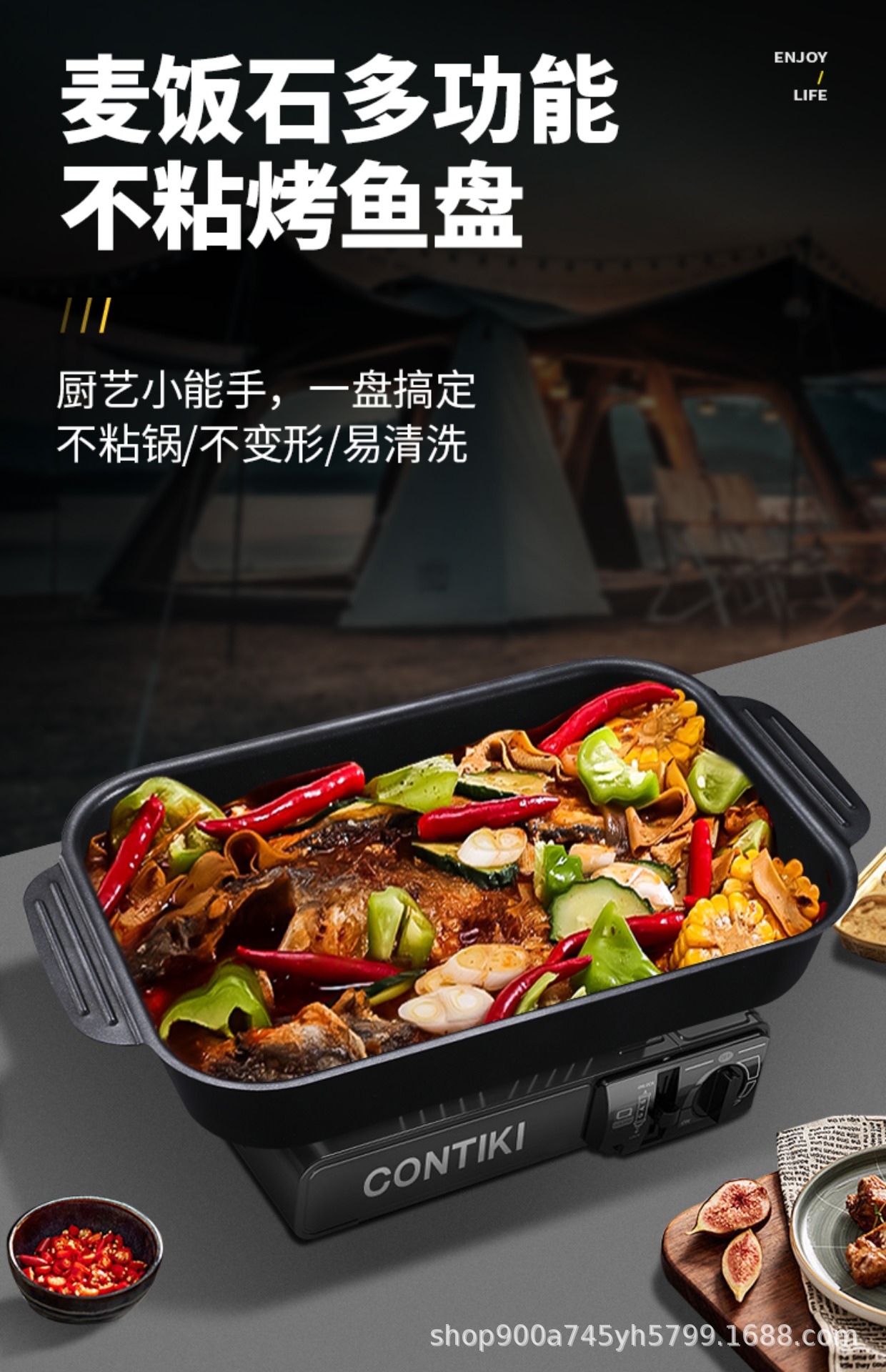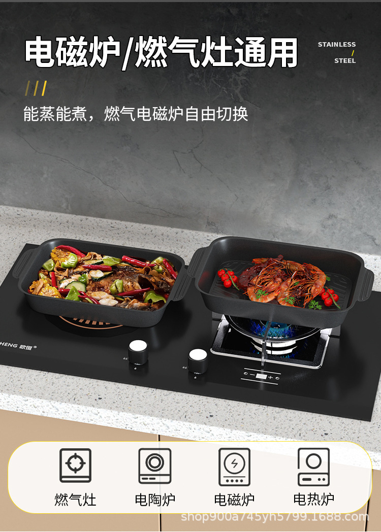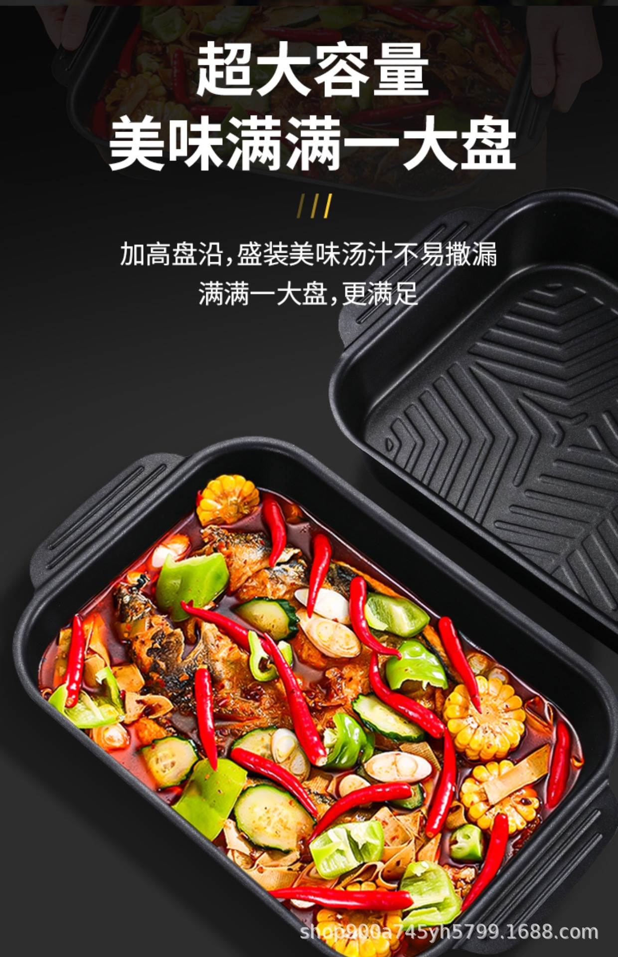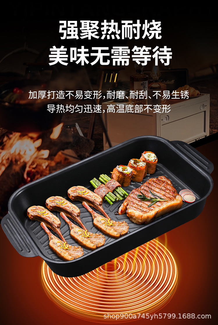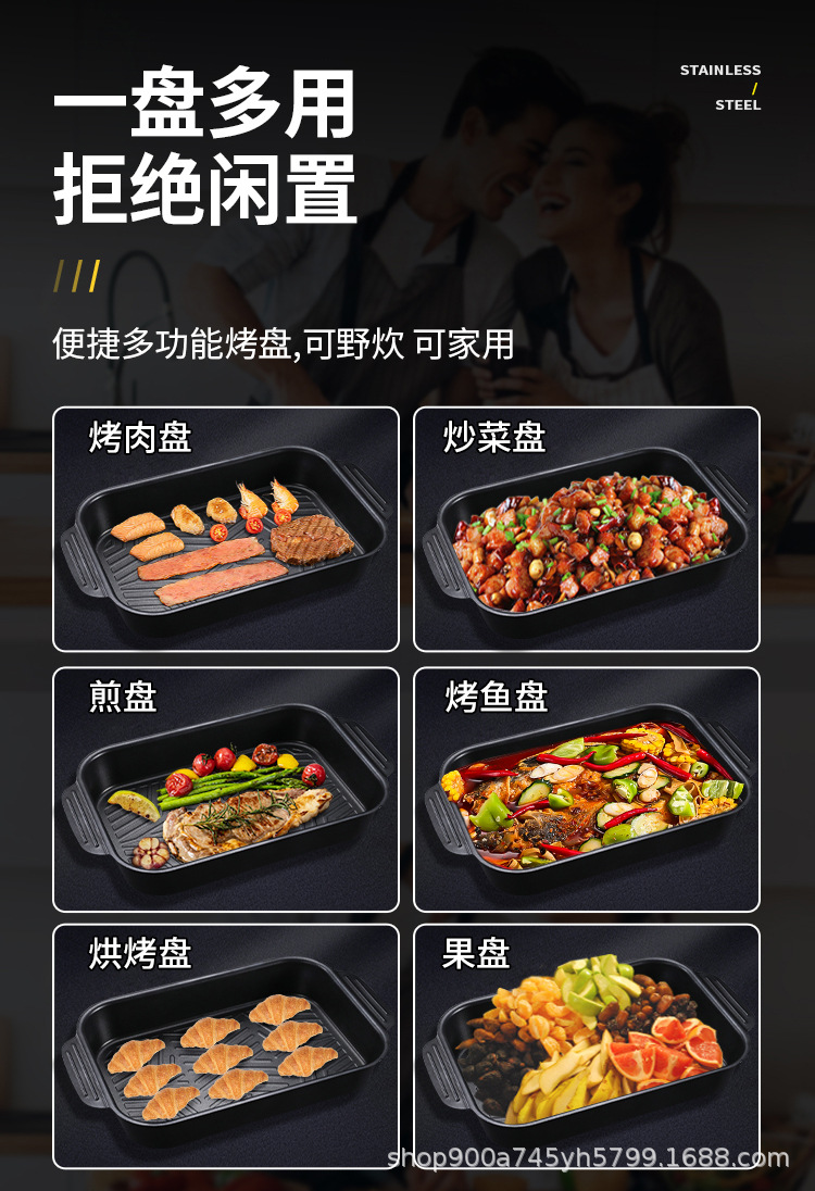 깊은 붙지 않는 구운 생선 접시 대용량 가정용 직사각형 구운 생선 트레이 인덕션 쿠커 바베큐 접시 상업용 탄소강 가정용스토어 가기