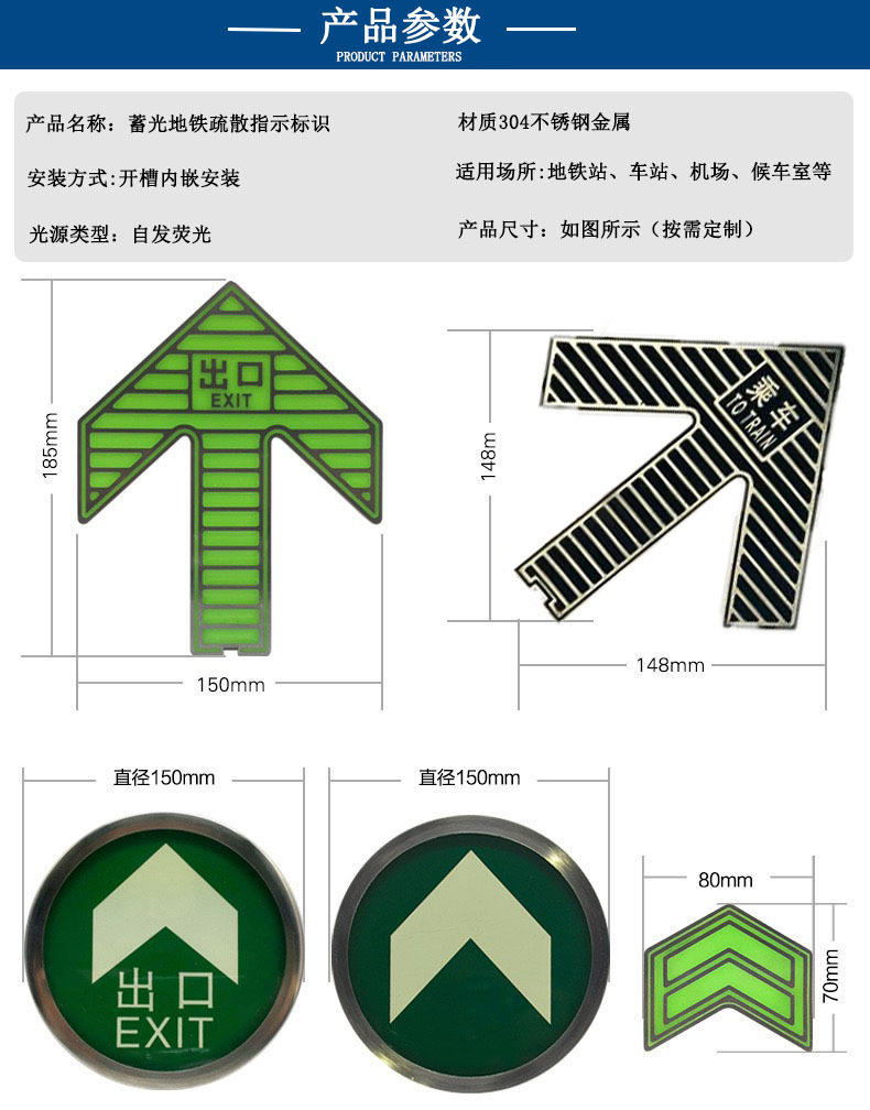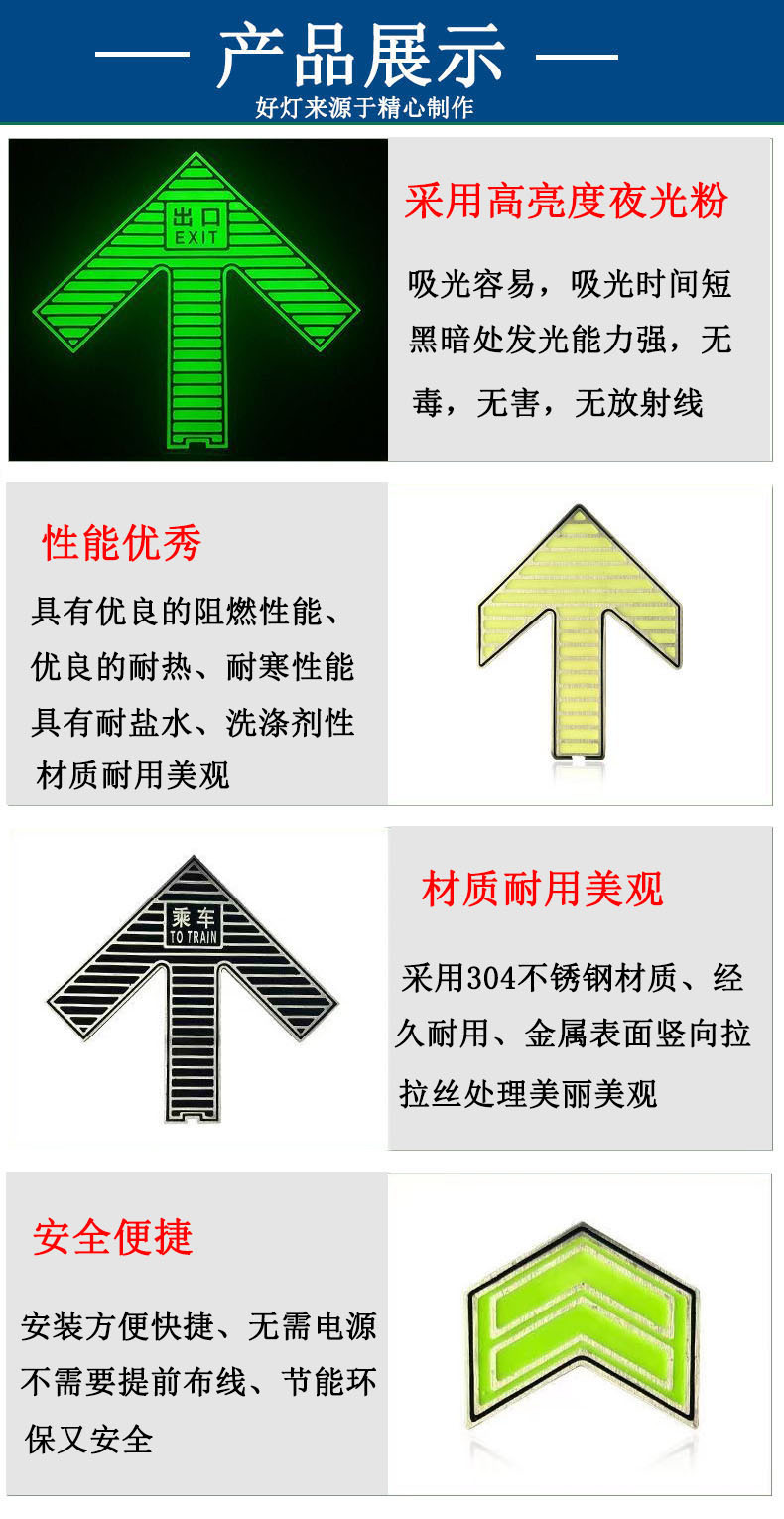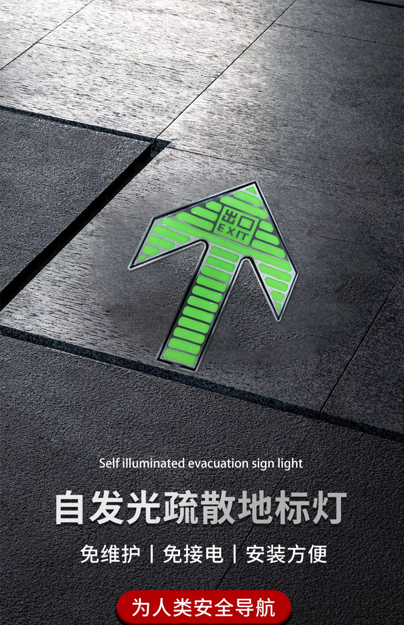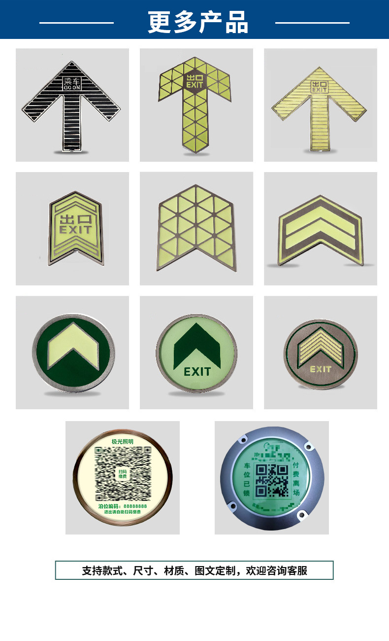 자체 발광 바닥 표시 스테인레스 스틸 축광 지하철 안전 출구 표시등 주차 스캔 코드 지하 조명