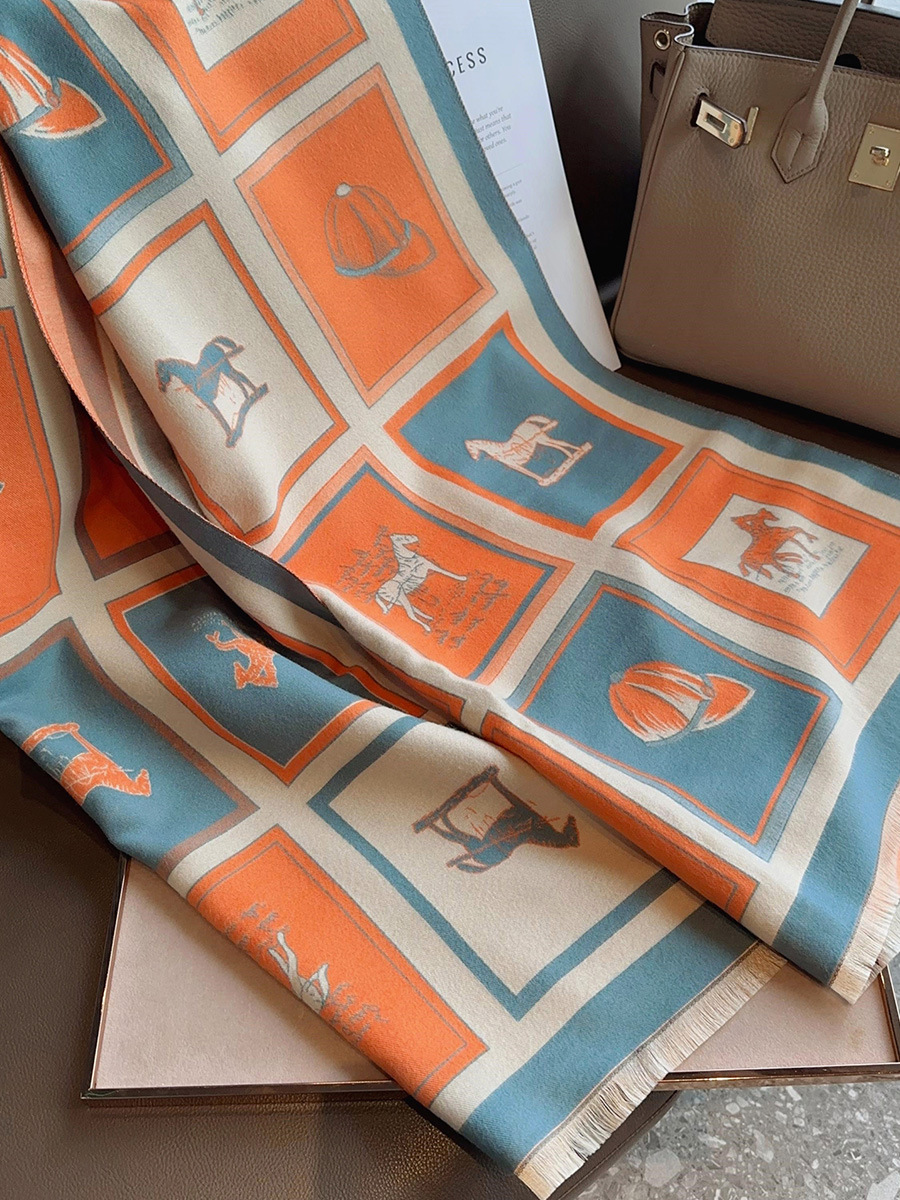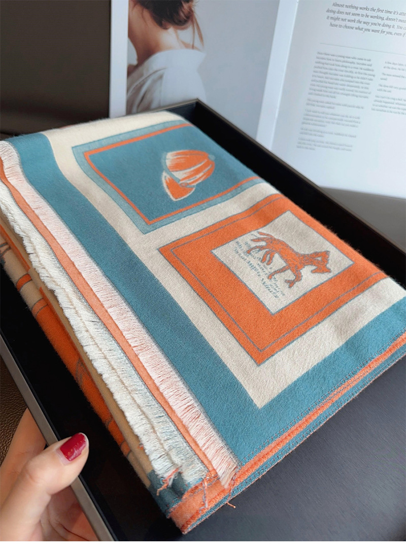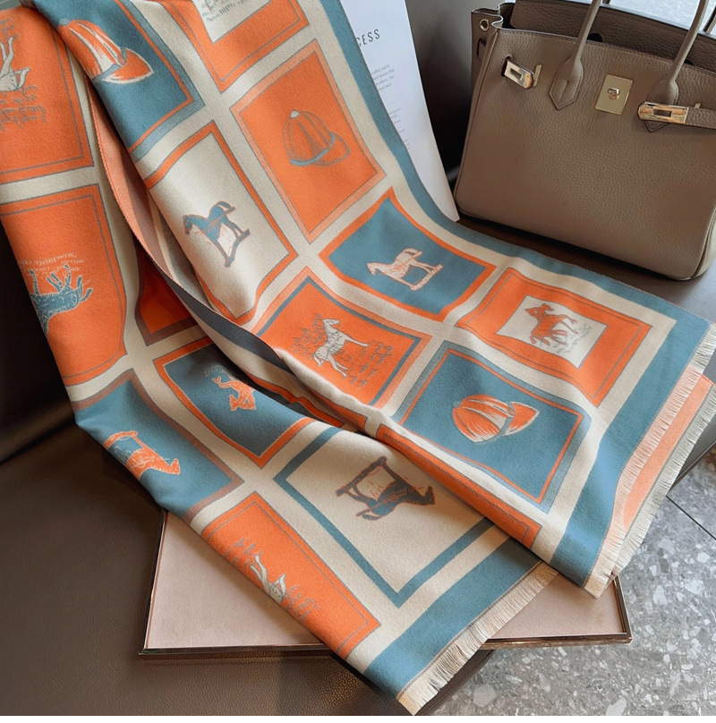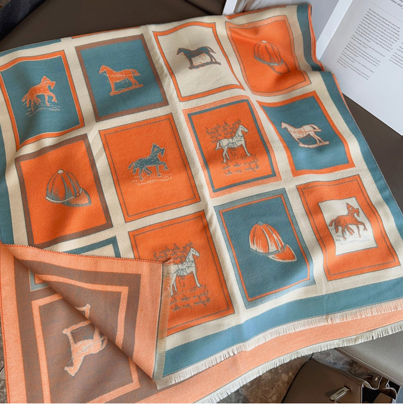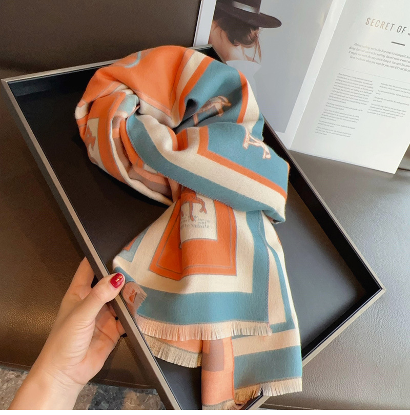 오렌지 영국 스타일 말 모조 캐시미어 대형 스카프 여성용 겨울 코트 우아한 숄 이중 사용 두꺼운 스카프스토어 가기