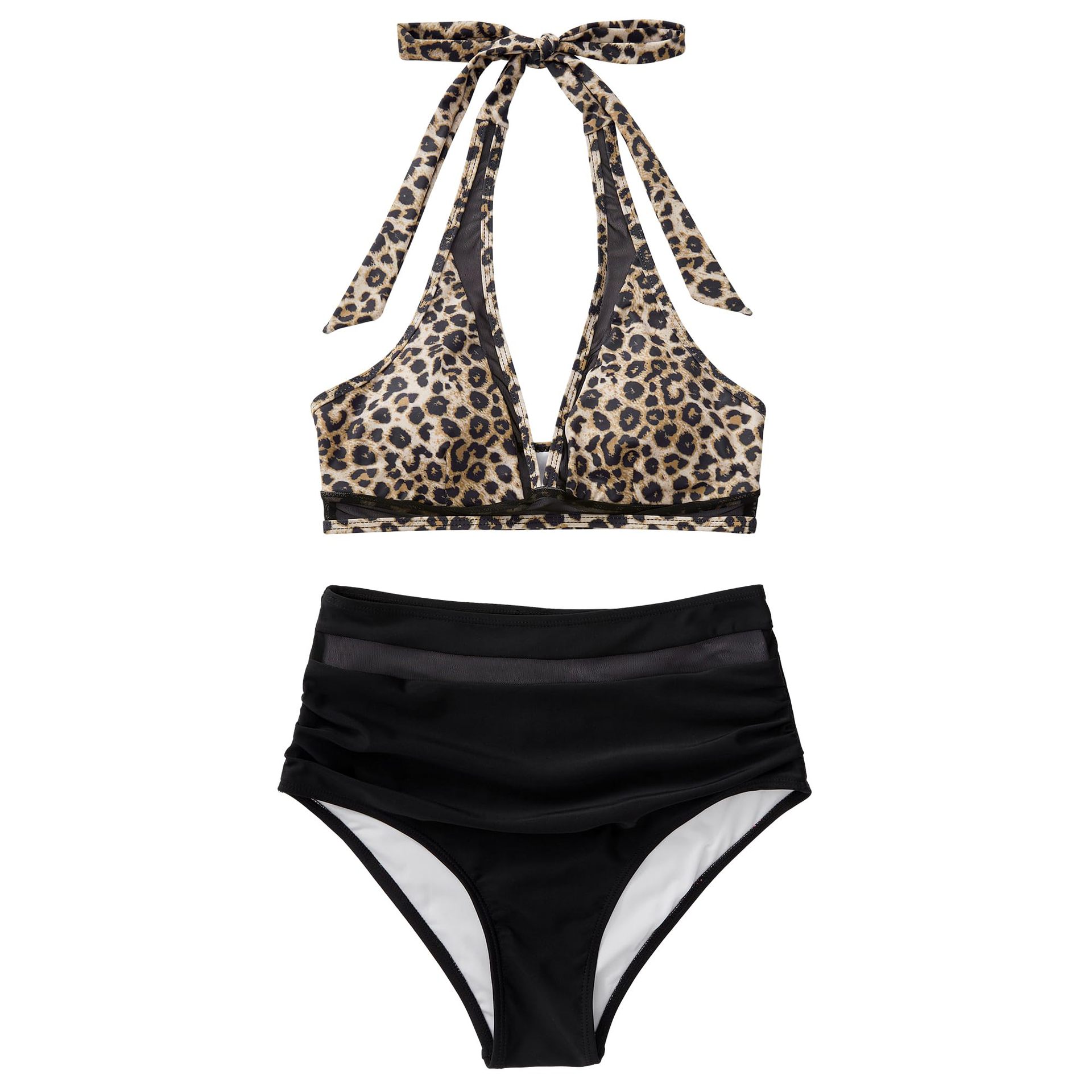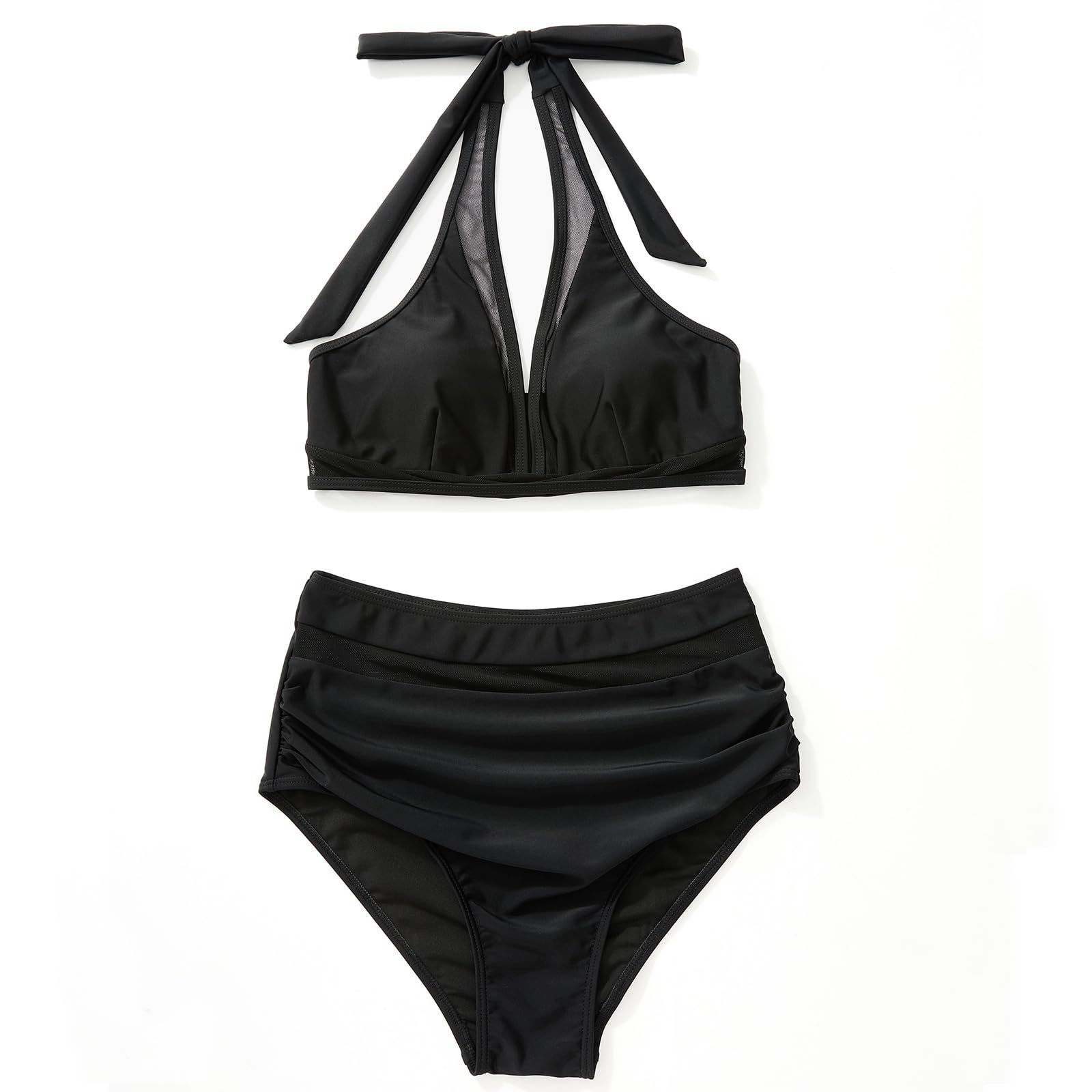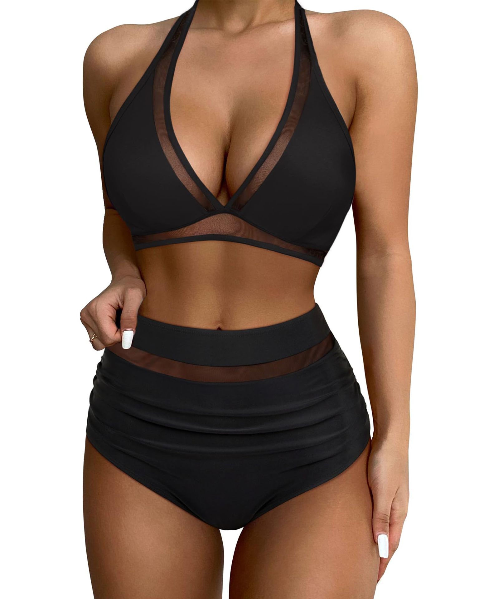 2024 새로운 유럽과 미국의 국경 간 비키니 세트 섹시한 메쉬 스티칭 분할 수영복 아마존 높은 허리 주름스토어 가기