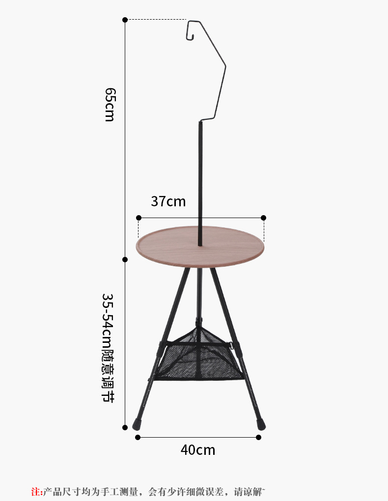 야외 작은 원형 테이블 알루미늄 합금 접이식 작은 테이블 캠핑 들어 올릴 수있는 여행 자기 운전 식탁 캠핑 티 테이블 라이트 랙