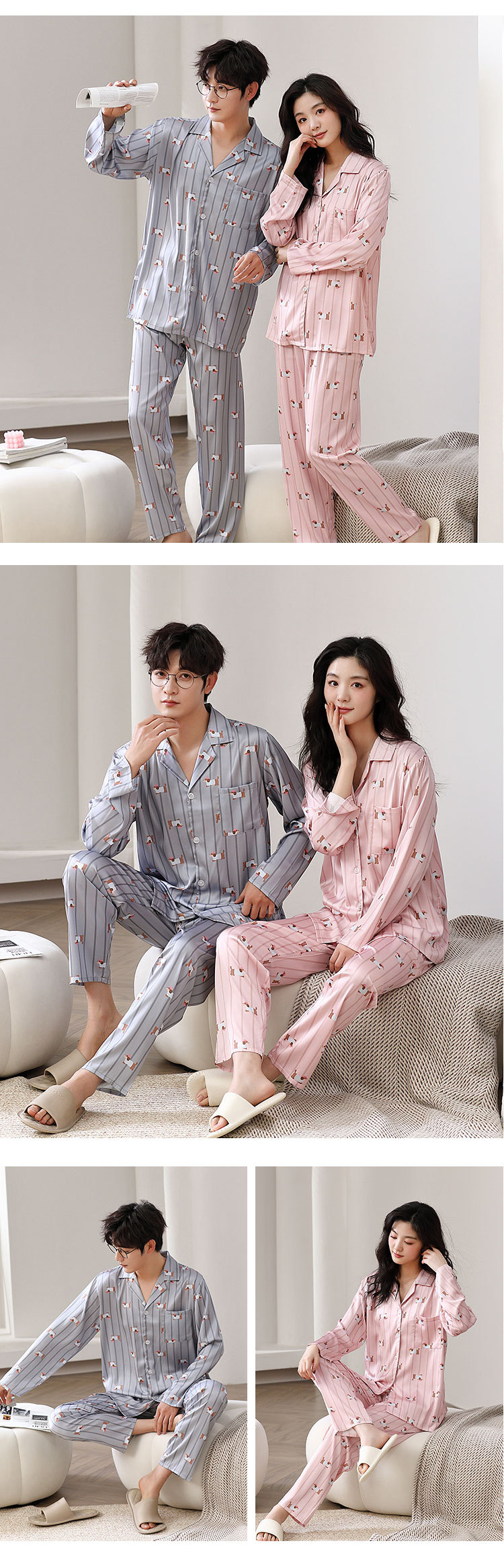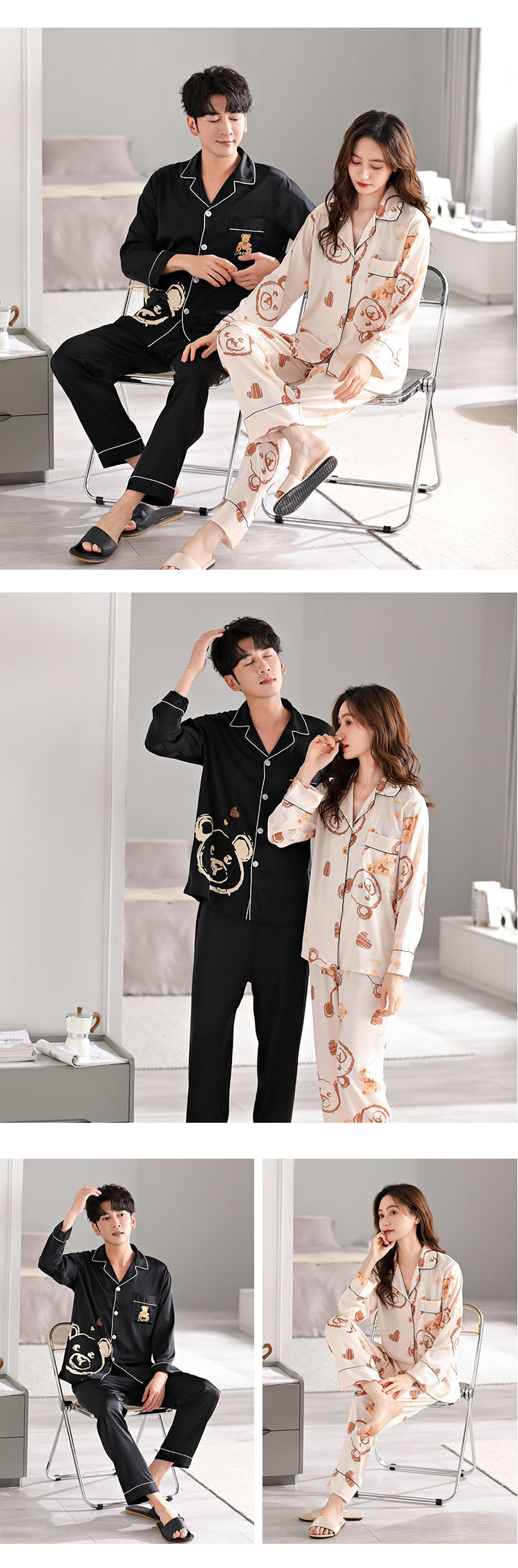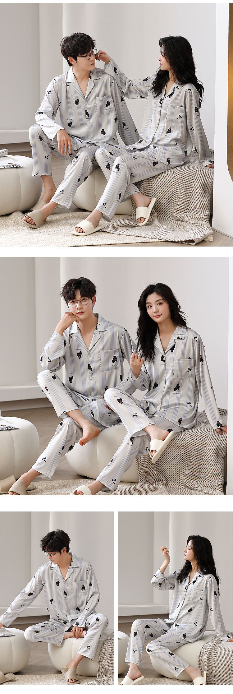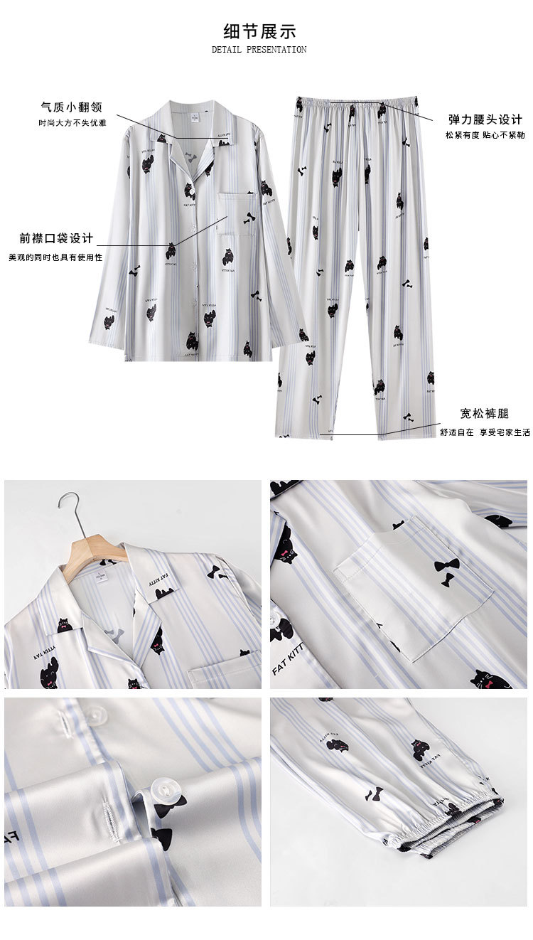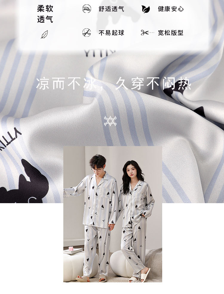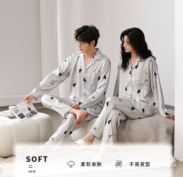 한 Yatong 새틴 아이스 실크 커플 잠옷 세트 가디건 남성과 여성을위한 새로운 캐주얼 가정복 아웃웨어
