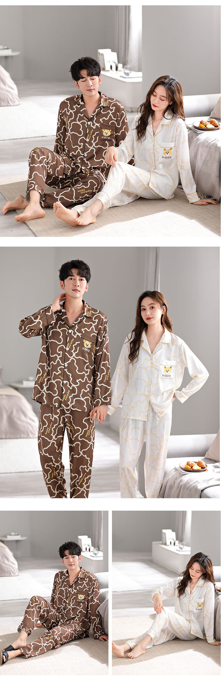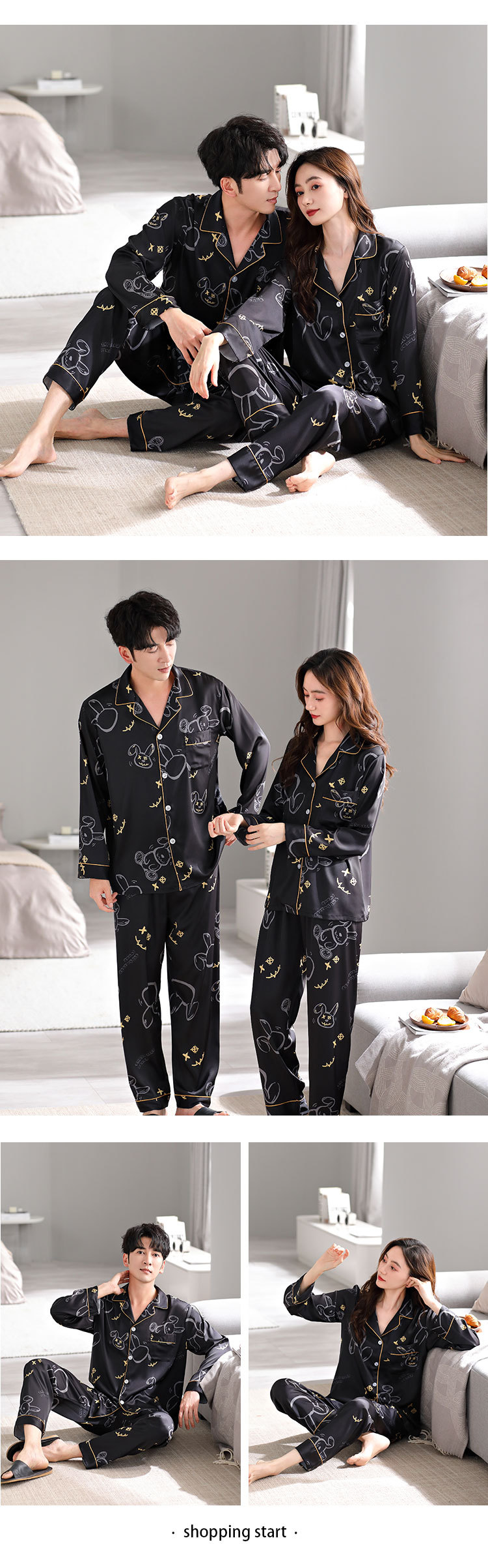 한 Yatong 새틴 아이스 실크 커플 잠옷 세트 가디건 남성과 여성을위한 새로운 캐주얼 가정복 아웃웨어스토어 가기