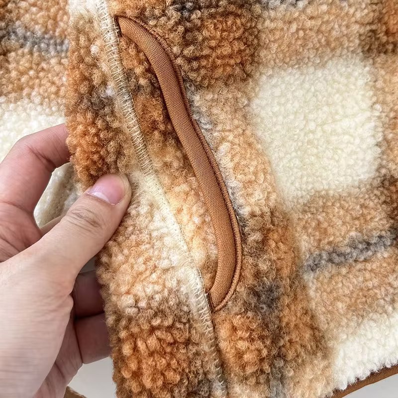 일본 주문제작 가을 겨울 아동복 남아 여아 방풍 보온 체크무늬 플리스 재킷 스탠드 칼라 재킷 461149