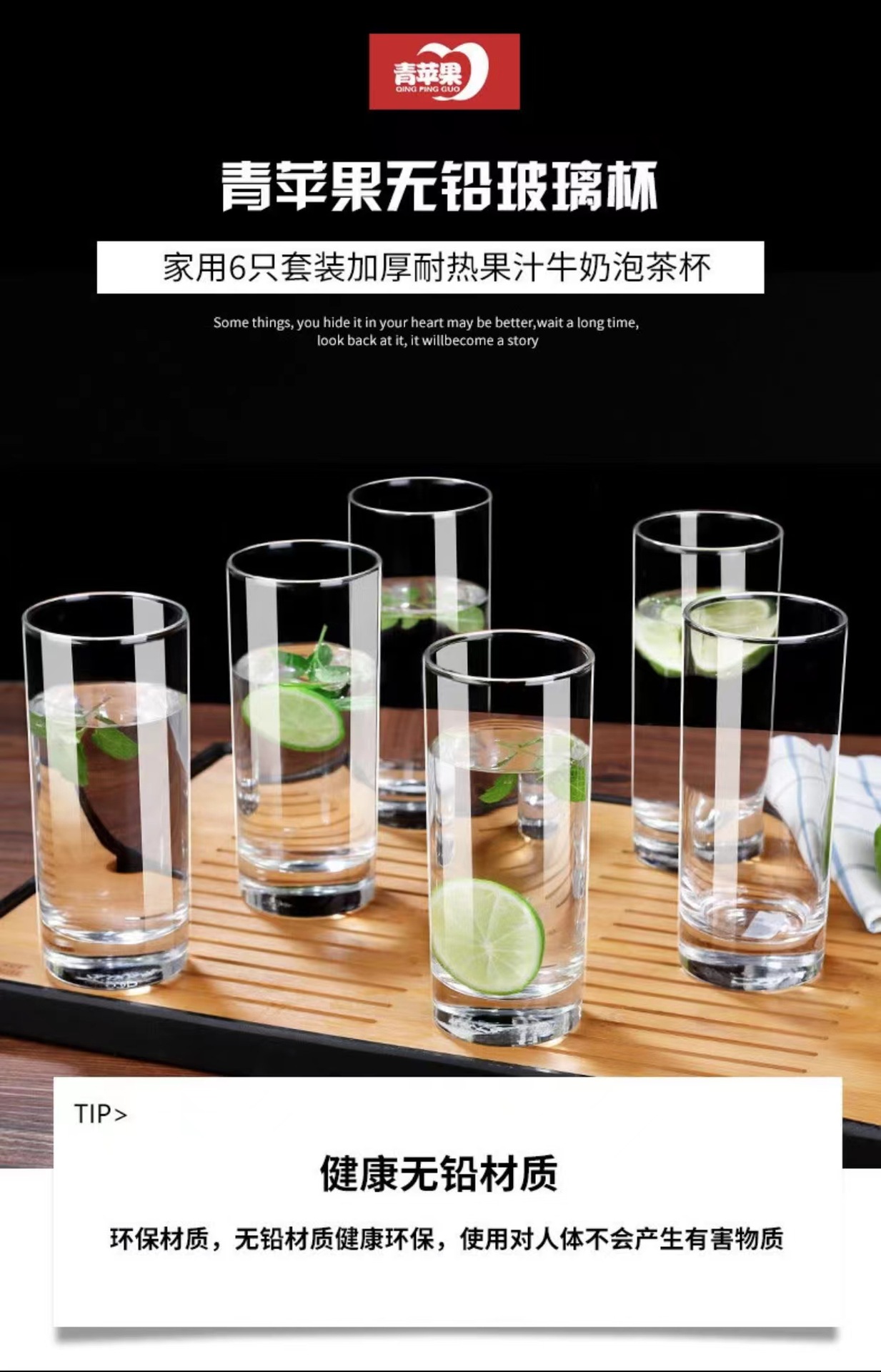 청사과 투명 유리컵 가정용 호텔 클럽 맥주컵 주스 음료컵 차컵 우유컵 구강세정컵