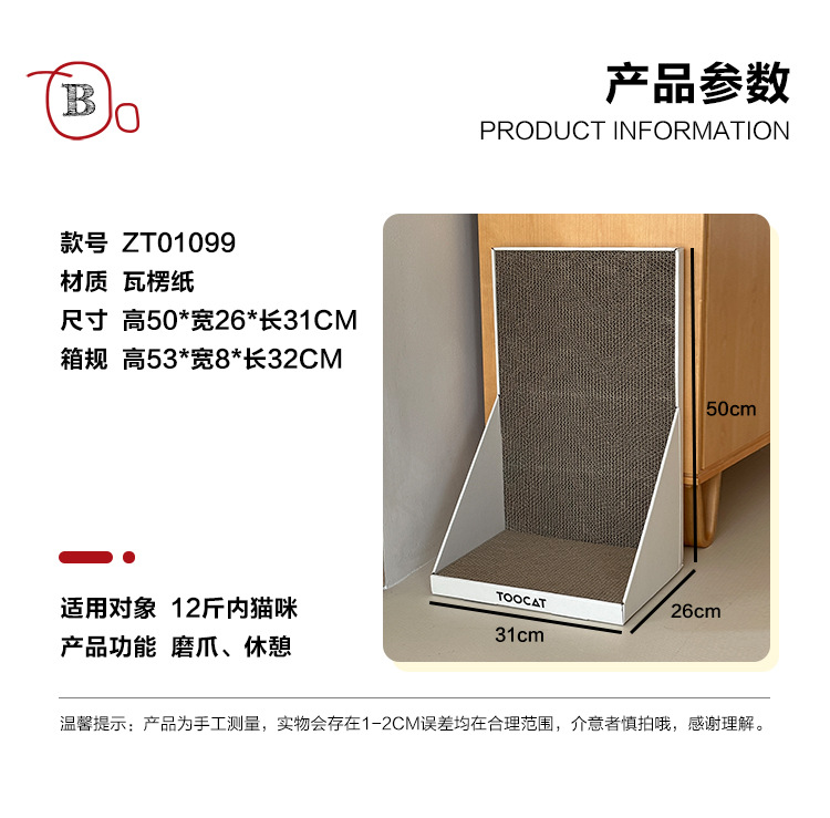 TOOCATL 골판지 고양이 스크래치 보드 수직 내마모성 무칩 대형 그라인딩 클로 스크래치 방지 소파 고양이 용품스토어 가기