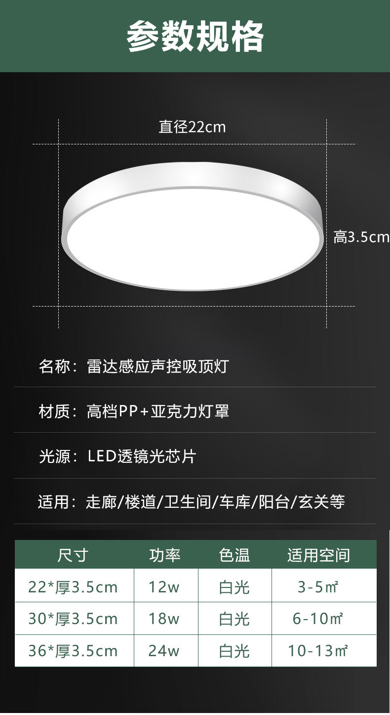 적외선 LED 인체 센서 램프 3방지 천장 조명 음성 제어 조명 레이더 복도 복도 센서 천장 조명