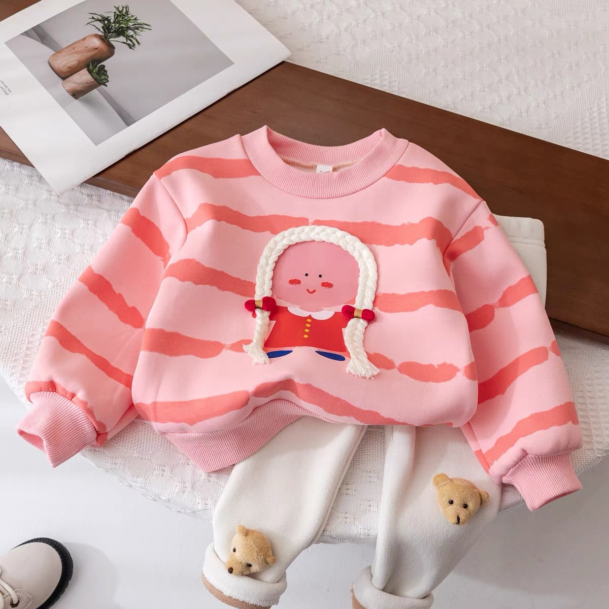 여아 운동복 원피스 벨벳 새로운 기모 어린이 유행 서양 스타일 귀여운 두꺼운 긴팔 유행 풀오버 탑스토어 가기