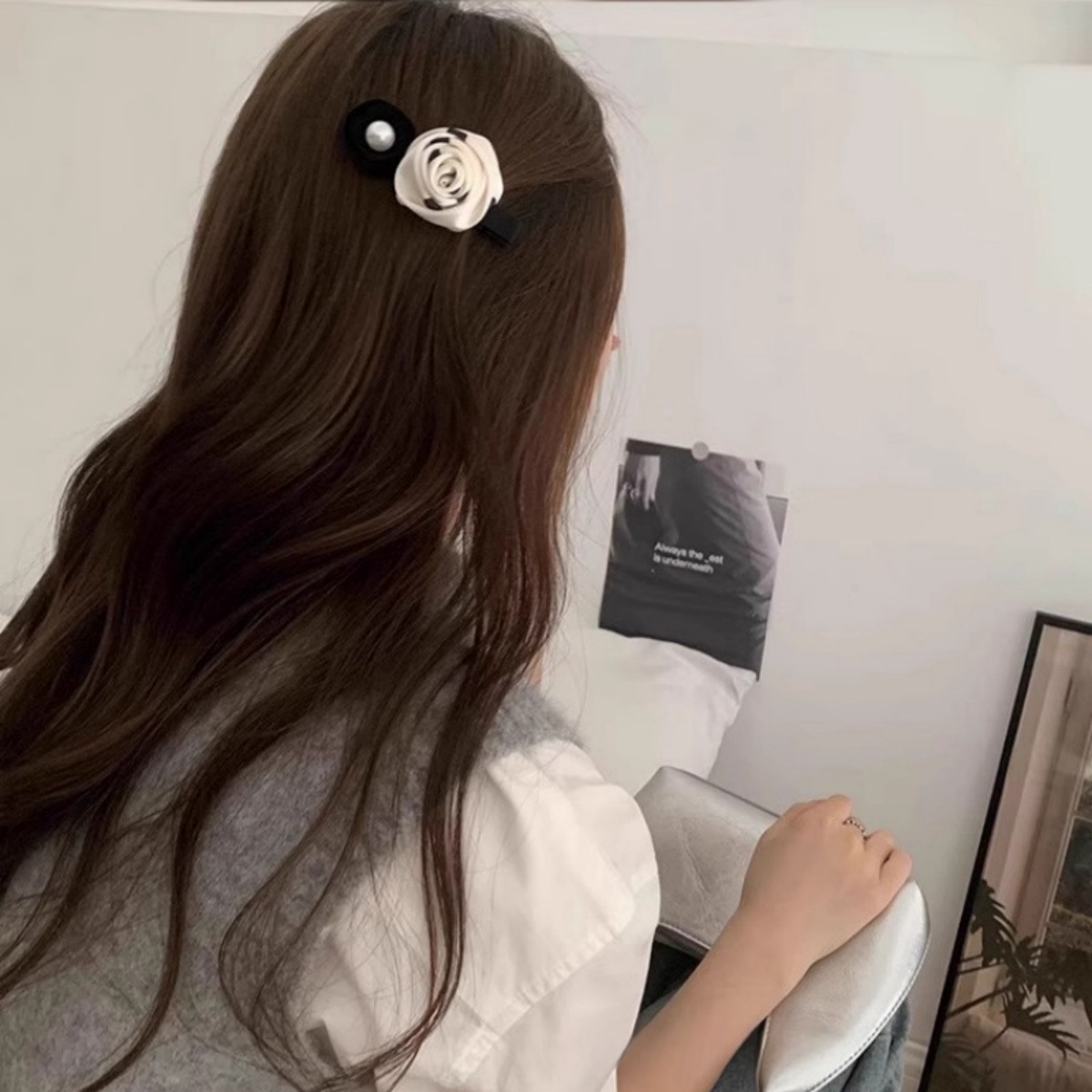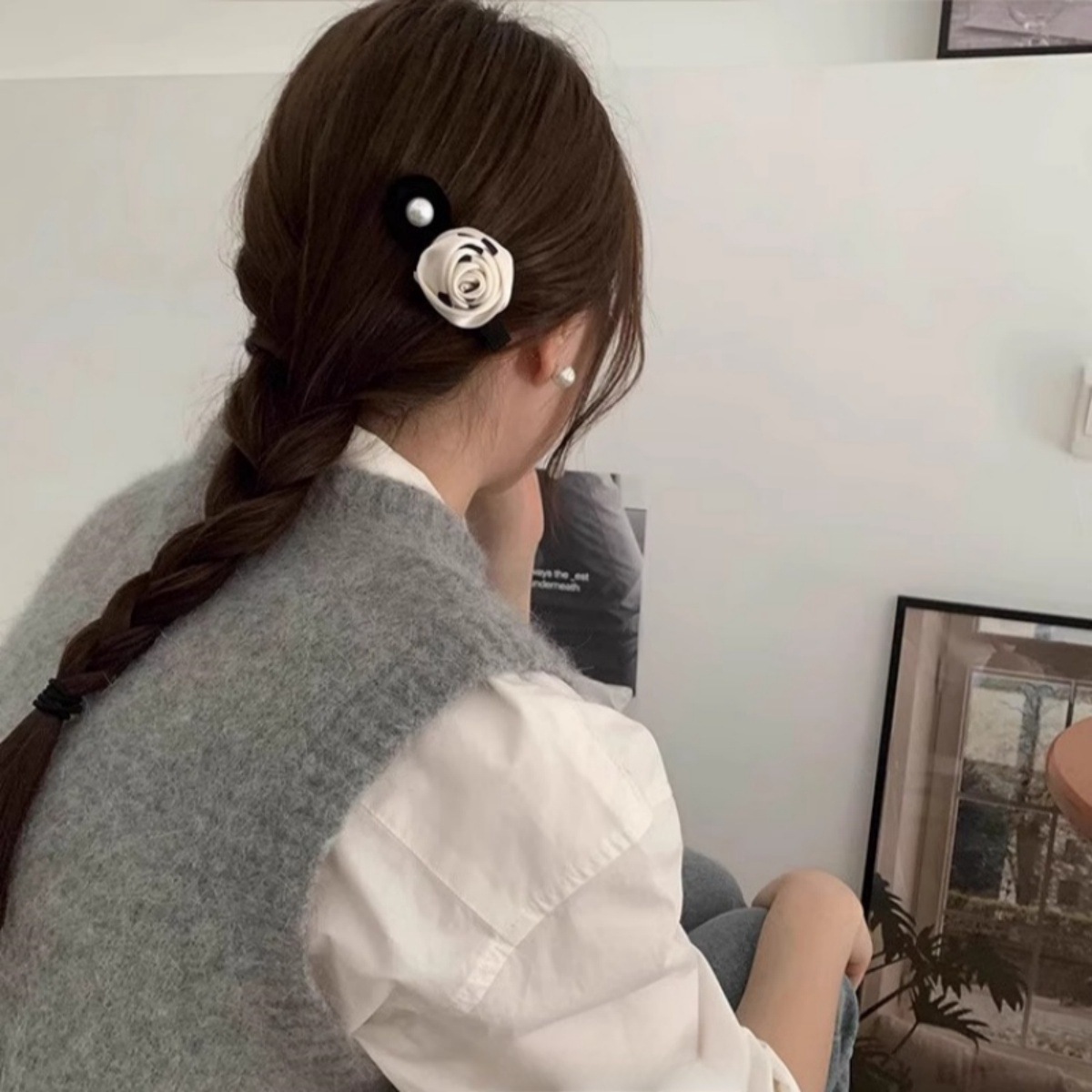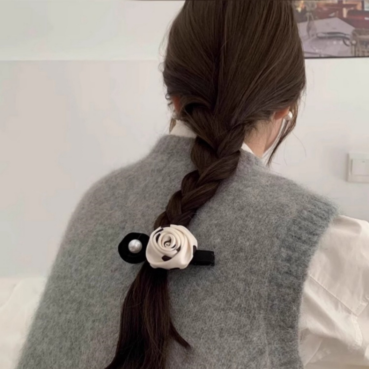 프렌치 스타일 로즈 심플 새틴 폴라 헤어 클립 여성용 앞머리 클립 모든 매치 우아한 사이드 클립 인 스타일 탑 클립 헤어 액세서리