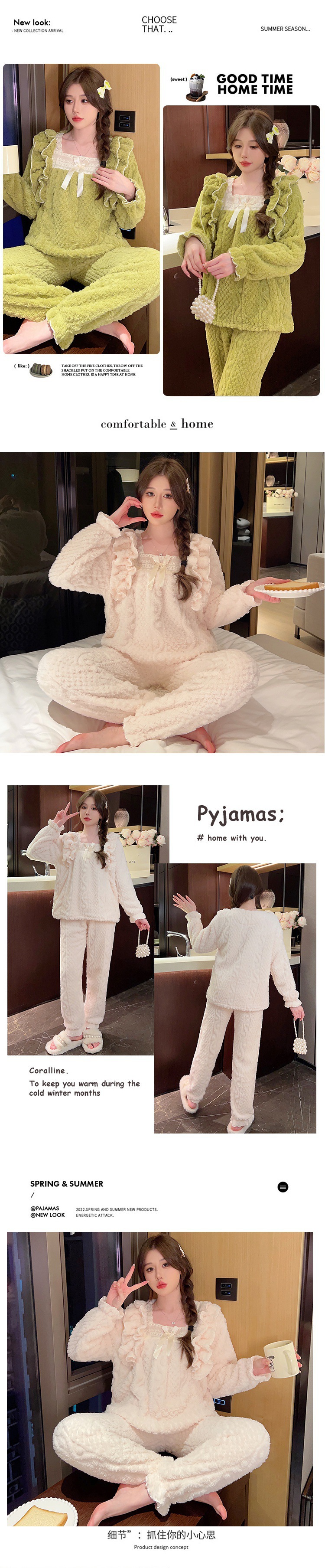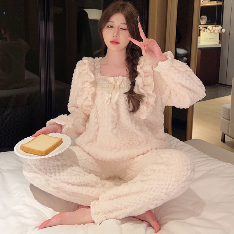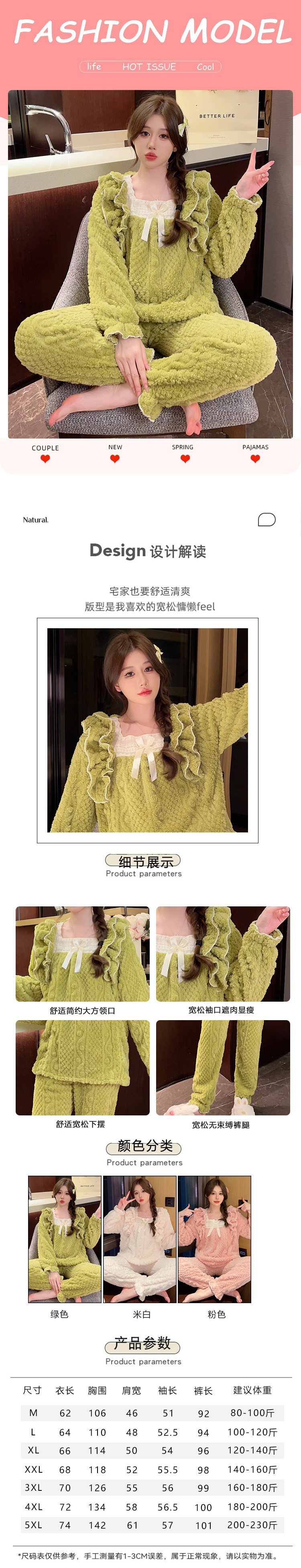 자카드 벨벳 잠옷 소녀용 2025 겨울 달콤하고 패셔너블한 레이스 긴팔 플러스 사이즈 115kg 빅사이즈 홈웨어스토어 가기