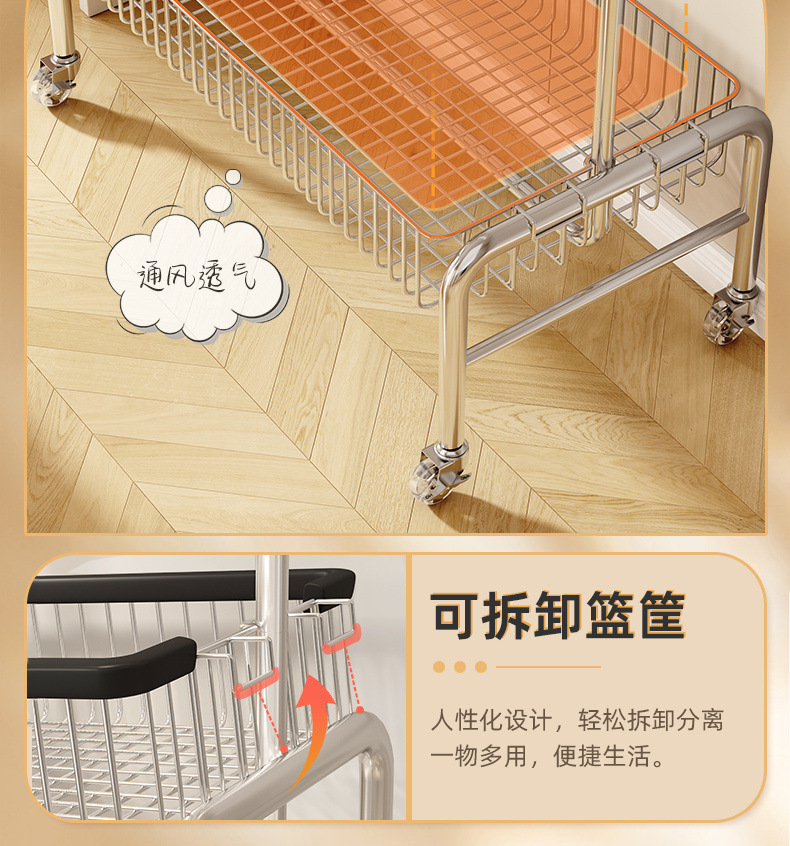 • 전기도금 실버 벨트 바구니 걸이 + 고무 바퀴