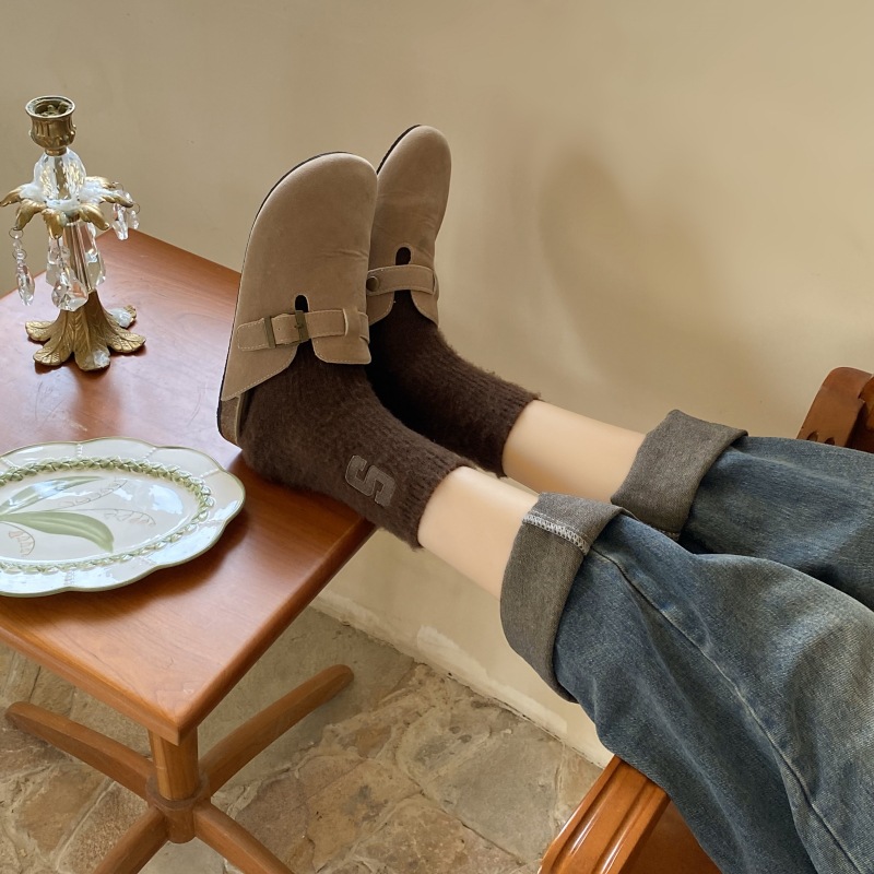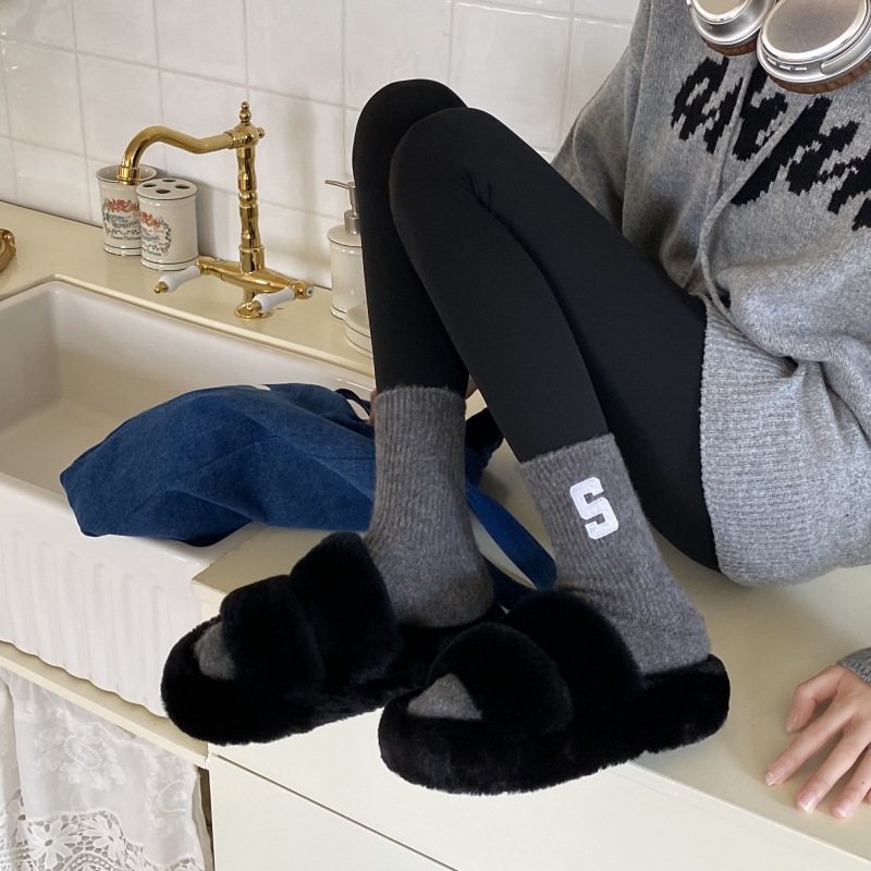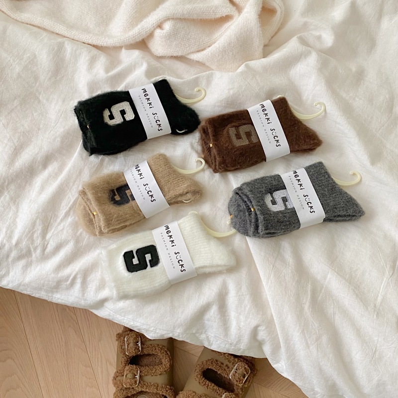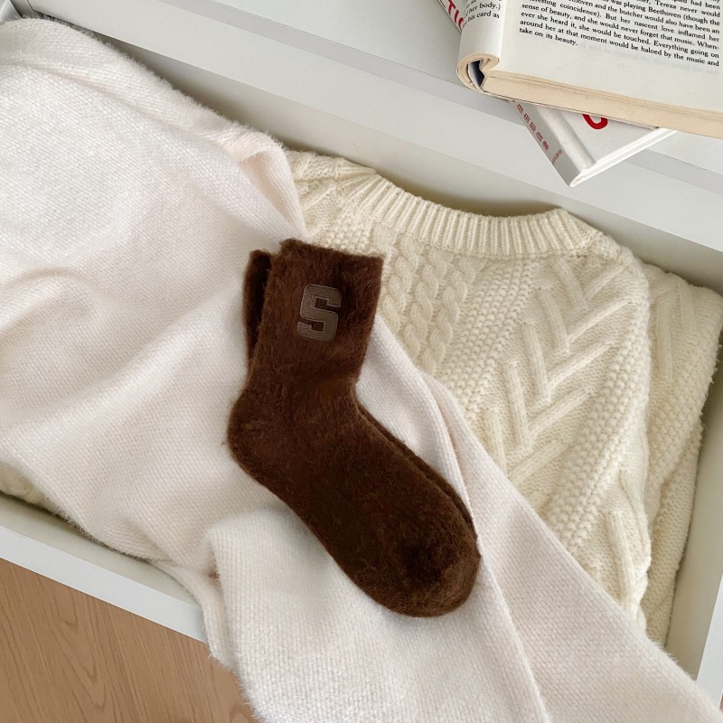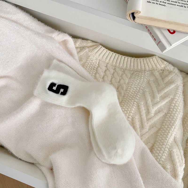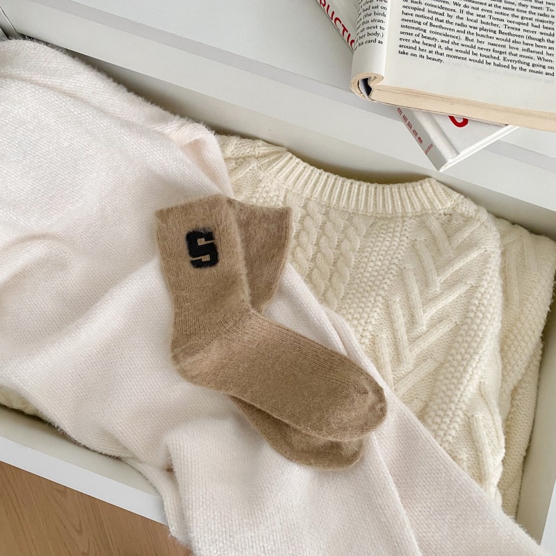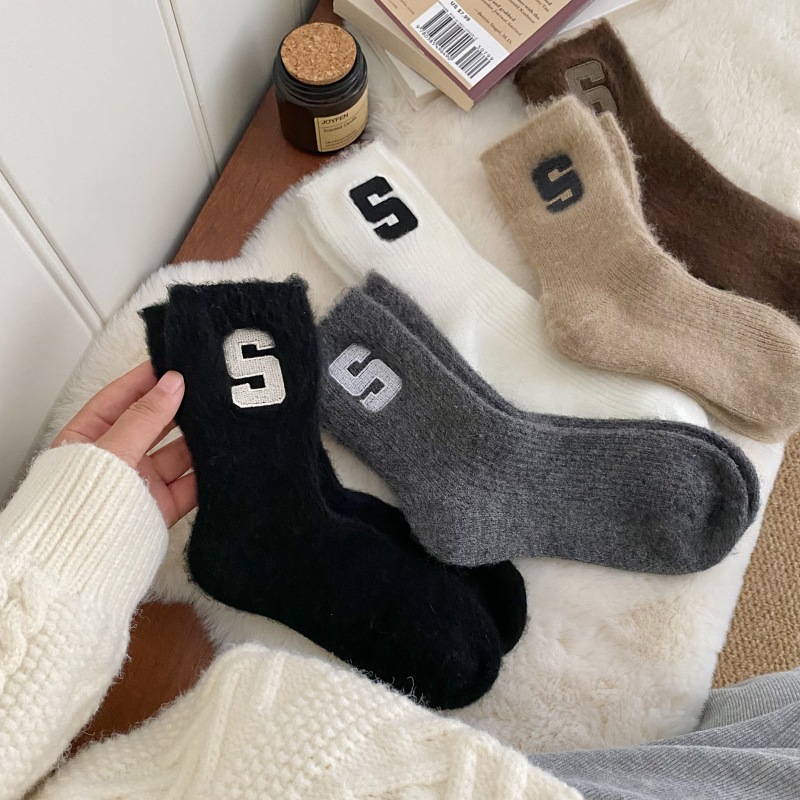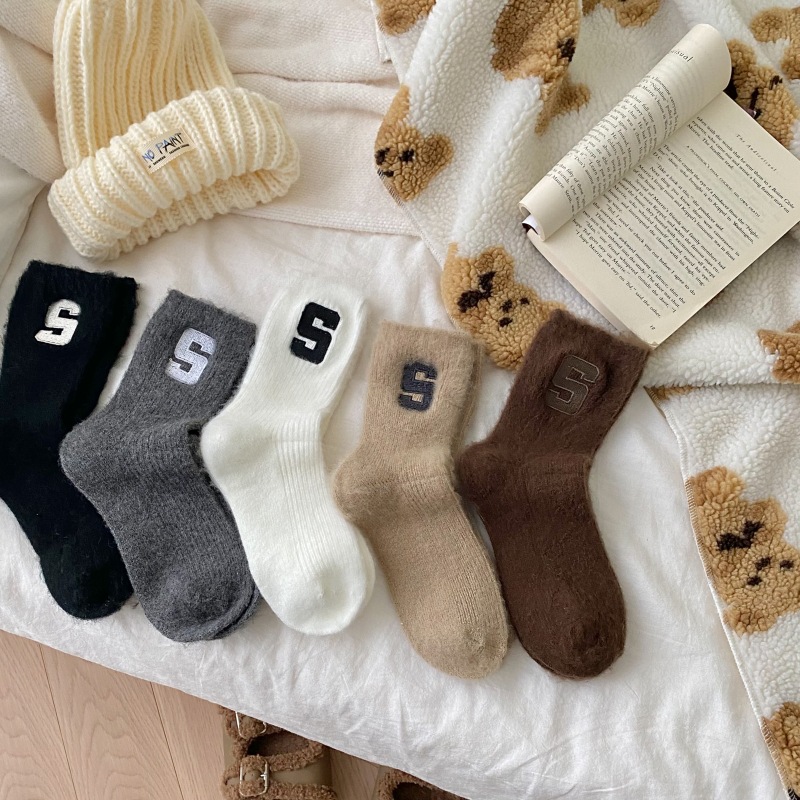 따뜻한 벨벳 울 S 자수 컬러 스크럽 여성 양말 문자 개인화 된 스포츠 중간 길이 양말 유행 의상 상어 바지