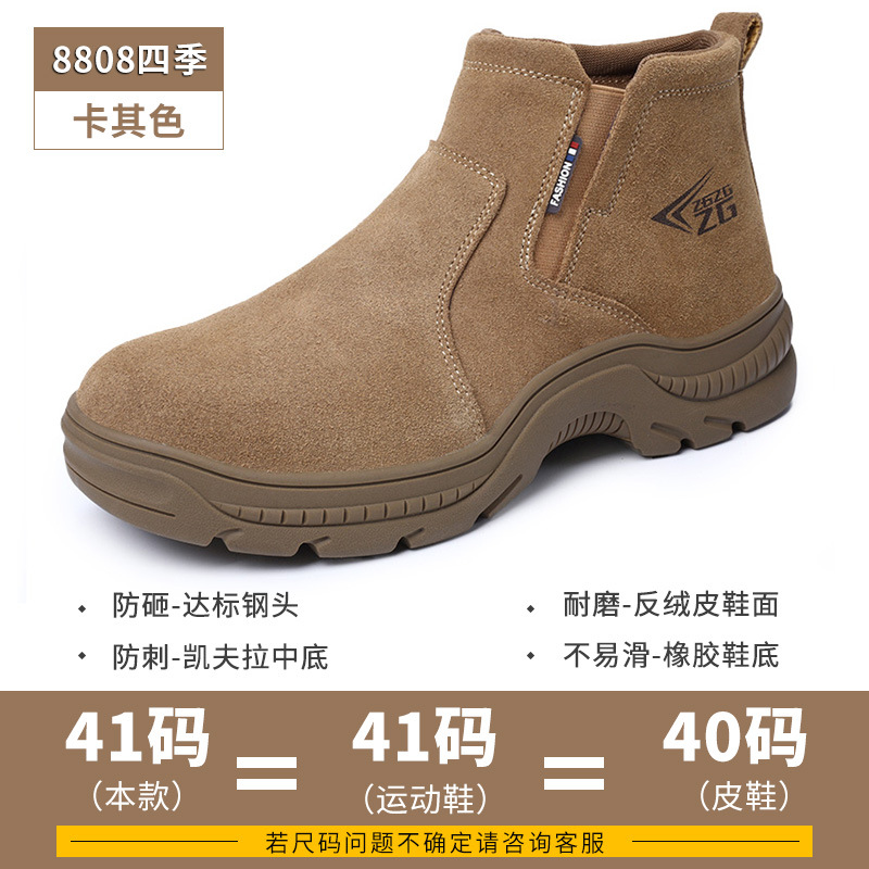 남성용 크로스보더 안전화, 스웨이드 가죽, 두꺼운 밑창, 용접공용 하이탑, 내마모성, 슬립온 작업화스토어 가기