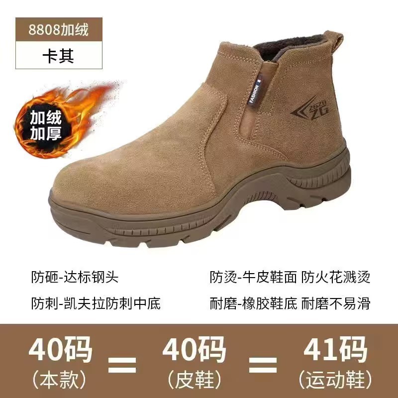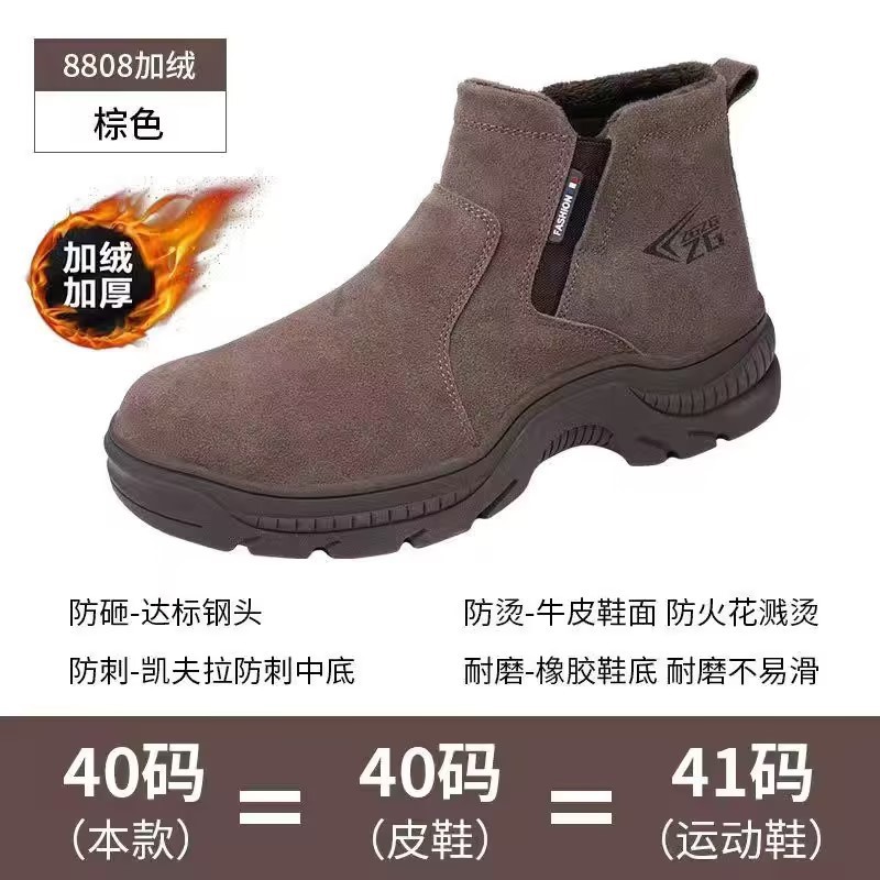 남성용 크로스보더 안전화, 스웨이드 가죽, 두꺼운 밑창, 용접공용 하이탑, 내마모성, 슬립온 작업화