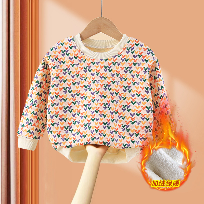 가을과 겨울 새로운 어린이 기모 티셔츠 소년 두꺼운 긴 소매 소녀 따뜻한 만화 니트 스웨터 어린이 의류 도매