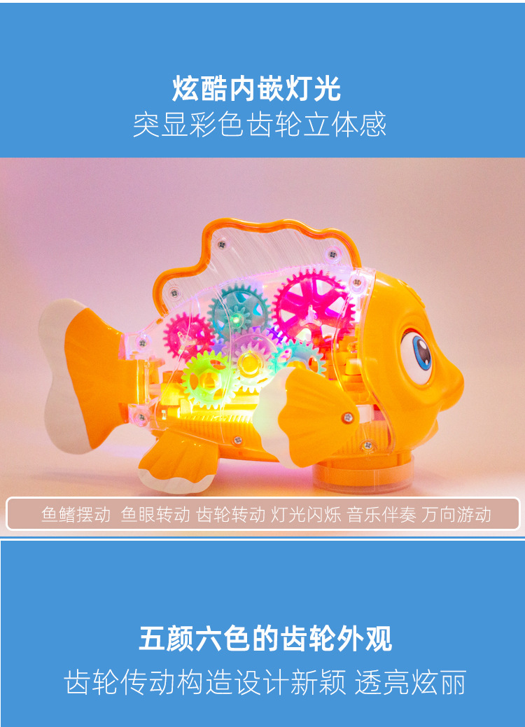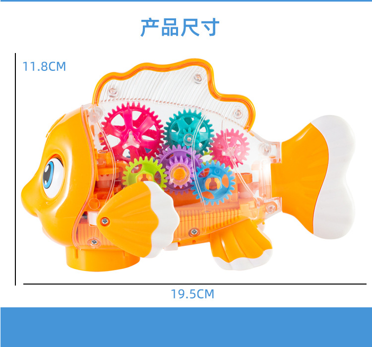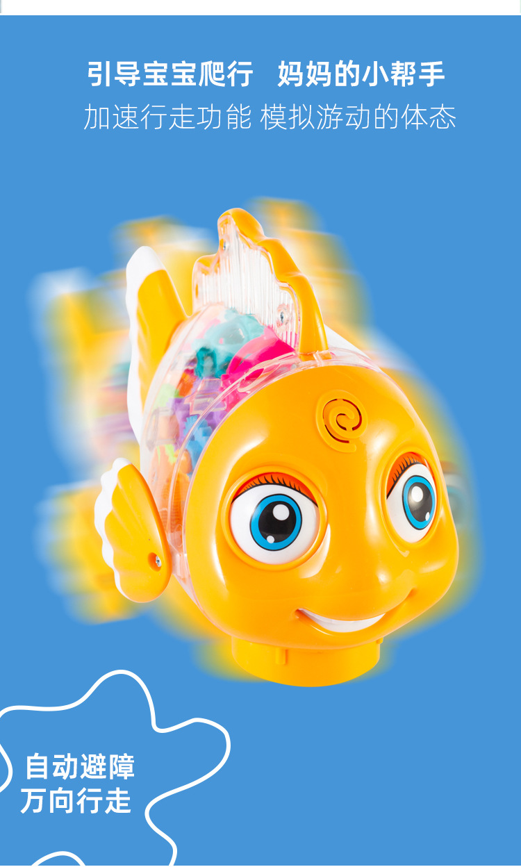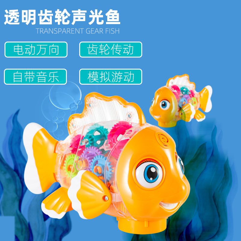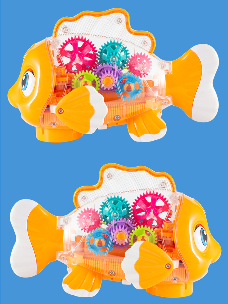 어린이 전기 범용 투명 기어 스윙 물고기 자동 가변 속도 발광 광대 물고기 마구간 야간 시장 도매 장난감스토어 가기