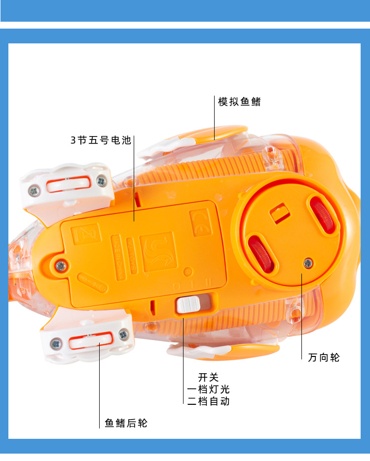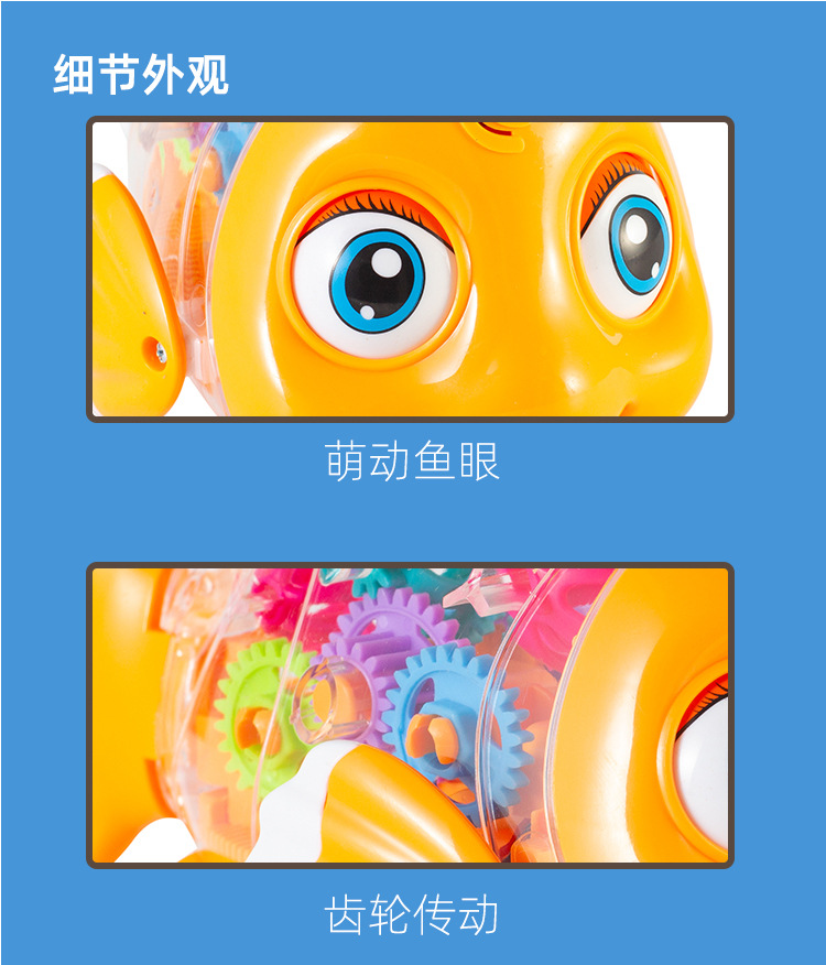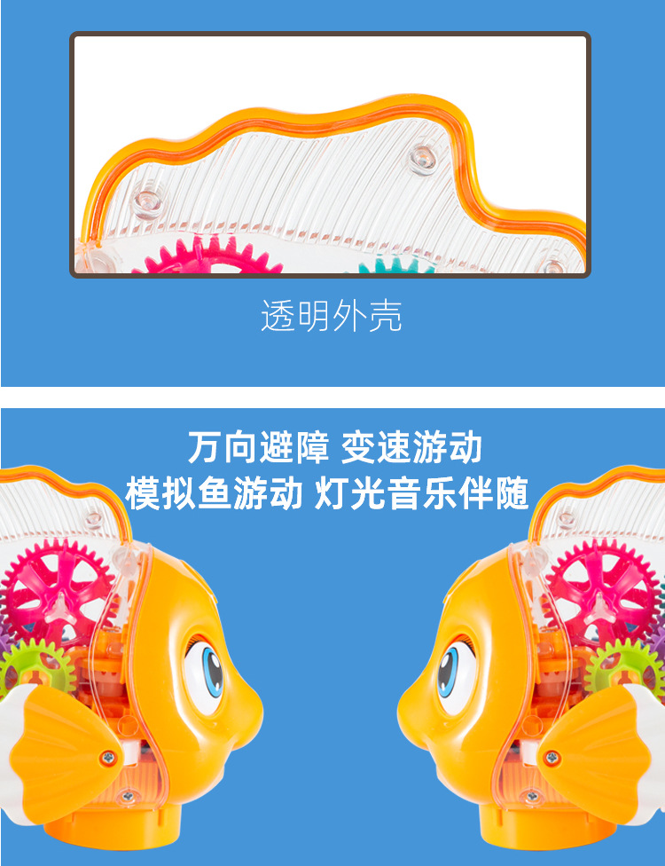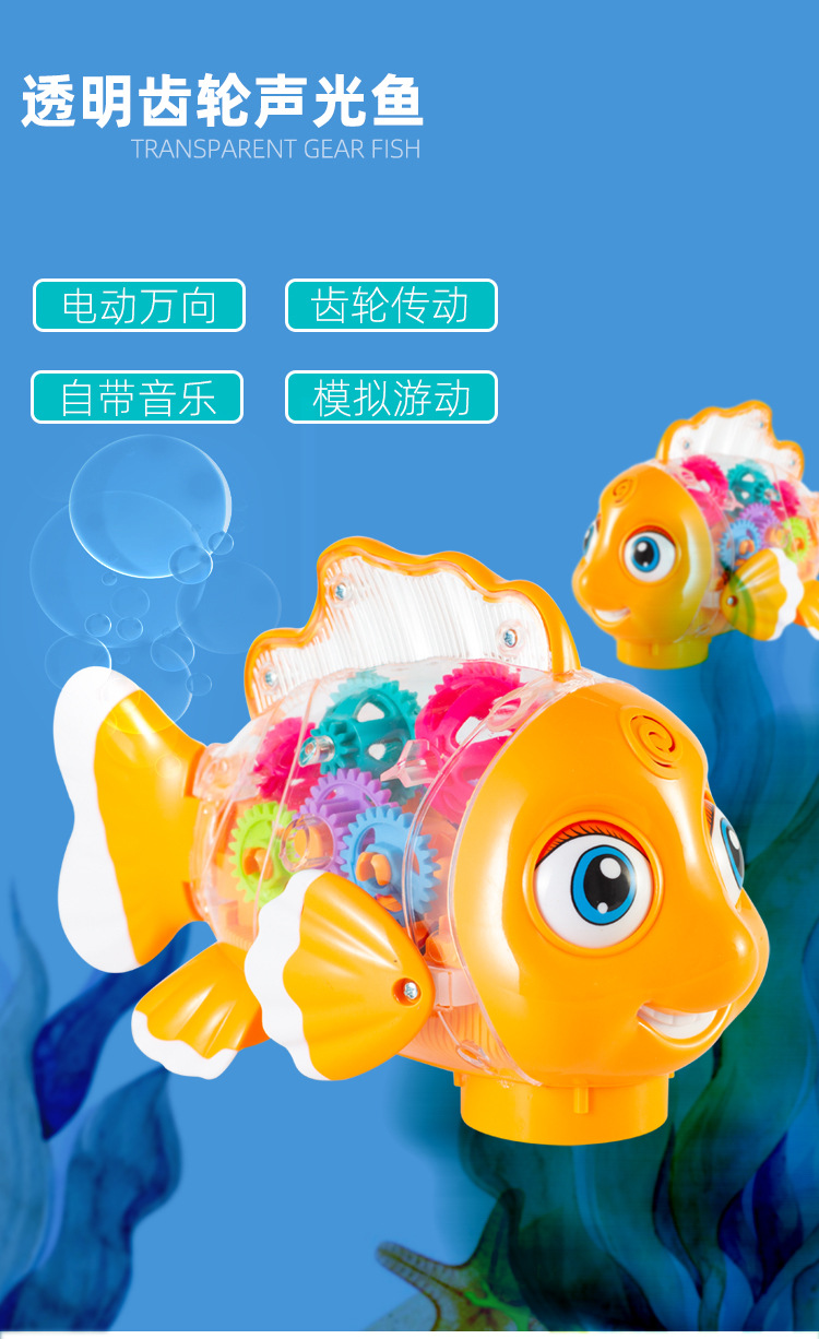어린이 전기 범용 투명 기어 스윙 물고기 자동 가변 속도 발광 광대 물고기 마구간 야간 시장 도매 장난감스토어 가기