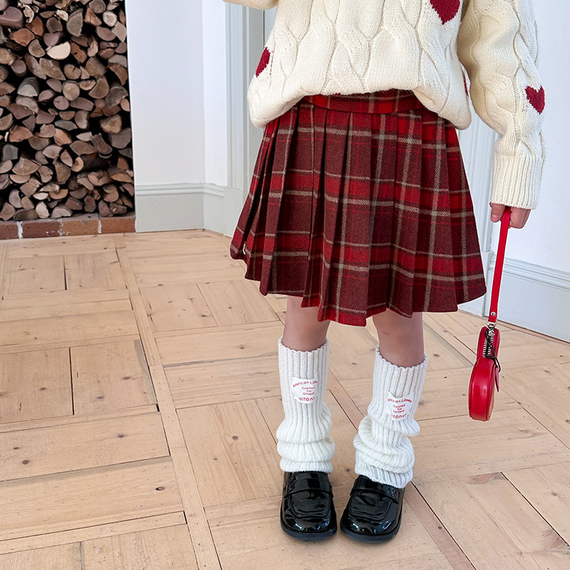 [기모] Emo Beibei Girls 베이비 스티키 실버 폭스 벨벳 스커트 어린이 두꺼운 모직 격자 무늬 스커트스토어 가기