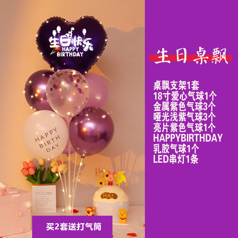 • [굵게] 프린트 생일 축하 퍼플 + 테이블 플로팅 + 램프