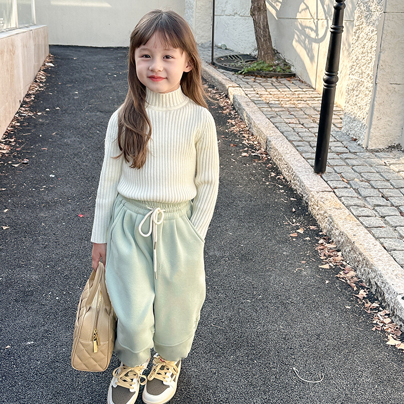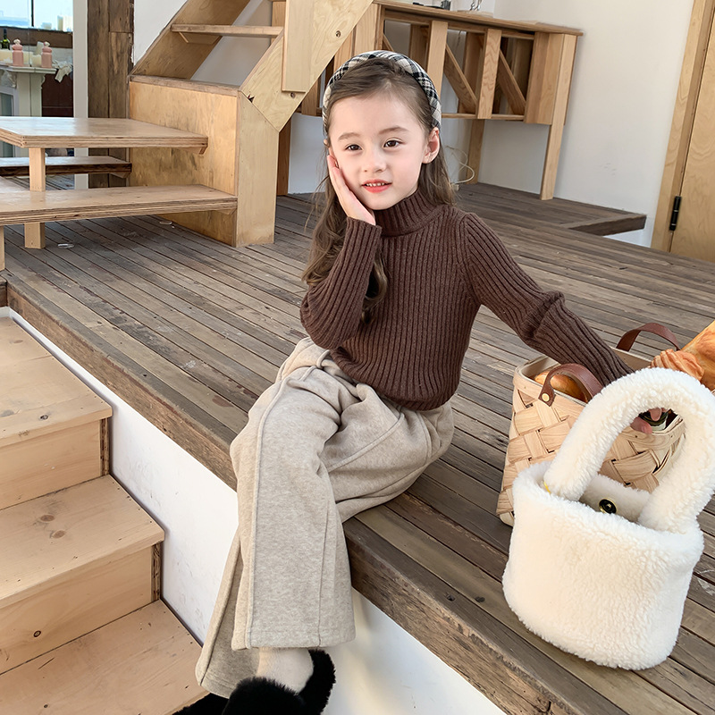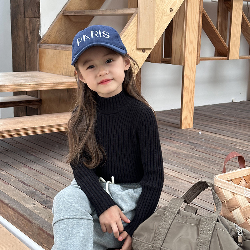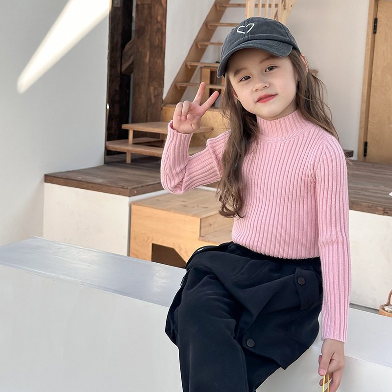Emo Beibei 아동베이스 미드 넥 스웨터 겨울 착용 소년과 소녀를위한 하이 스트레치 벨벳 원사 하프 하이 넥 니트 탑