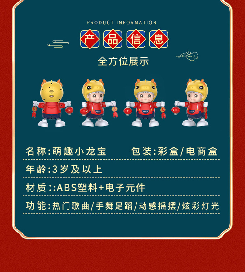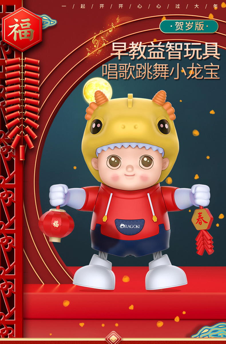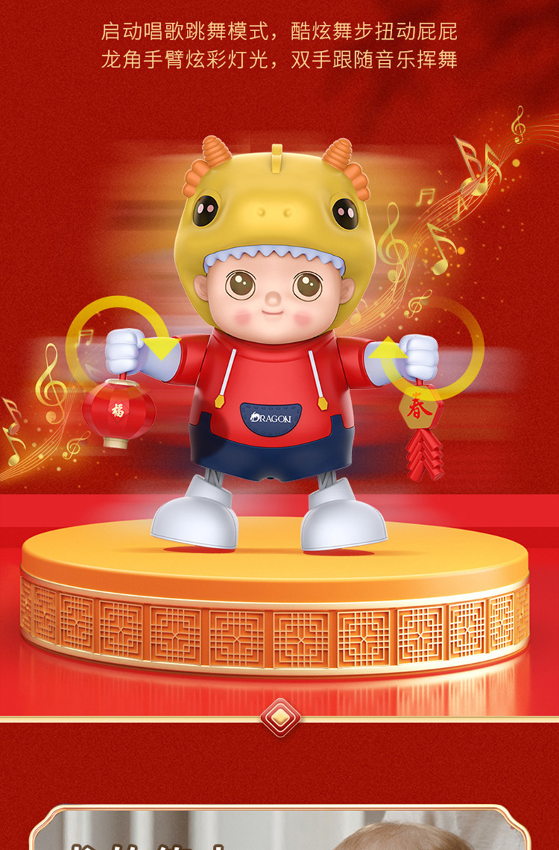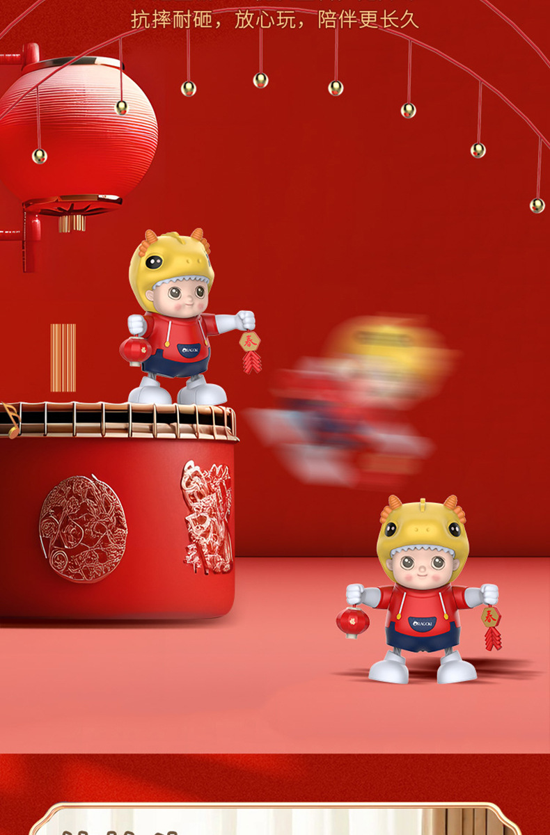 어린이 전기 인형 장난감 스윙 노래 작은 용 남자 드럼 작은 토끼 빛나는 춤 로봇 장난감스토어 가기