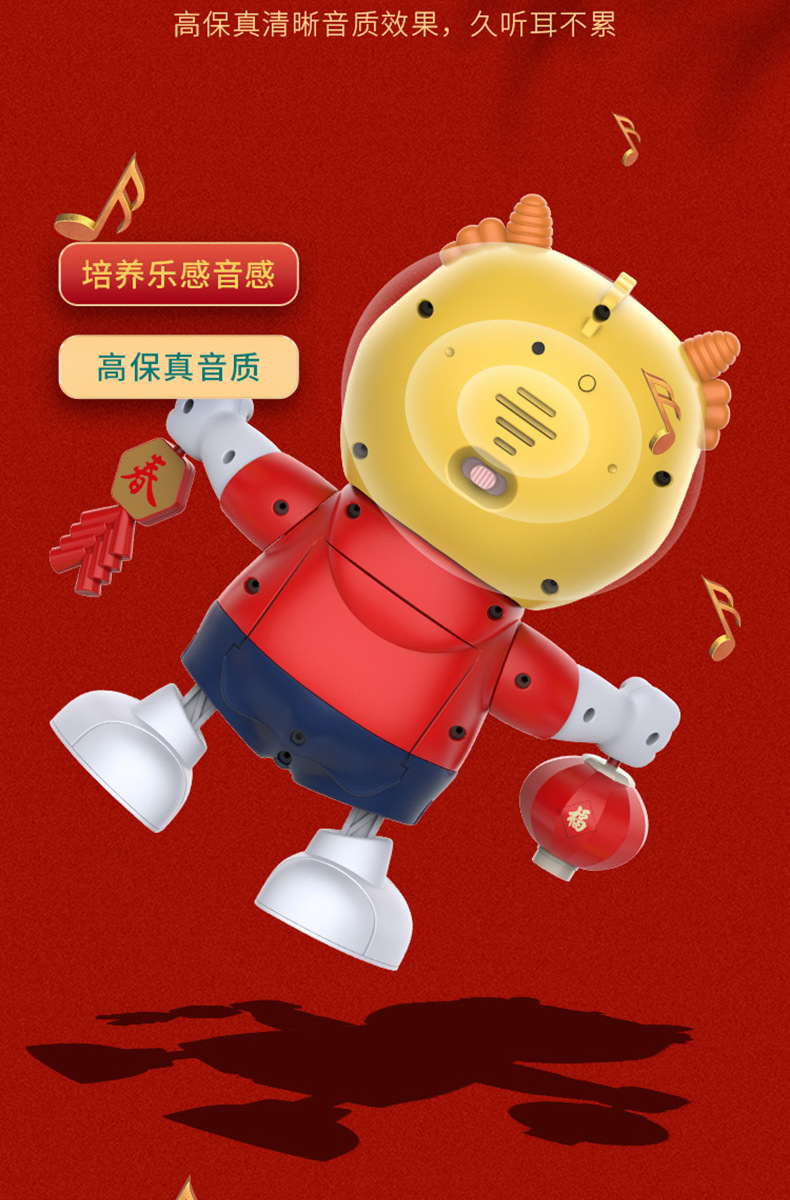 어린이 전기 인형 장난감 스윙 노래 작은 용 남자 드럼 작은 토끼 빛나는 춤 로봇 장난감