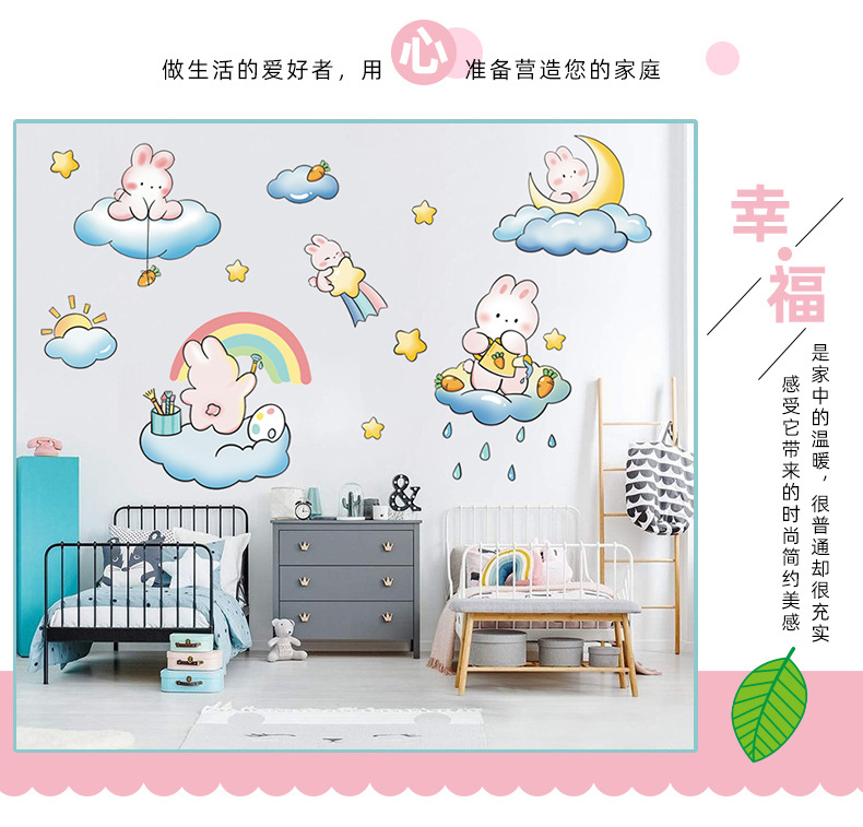귀여운 토끼 벽 스티커 공주 방 레이아웃 만화 스티커 어린이 방 벽 장식 XY6028