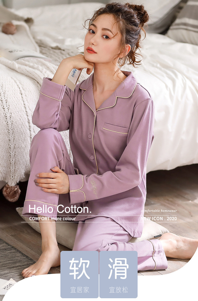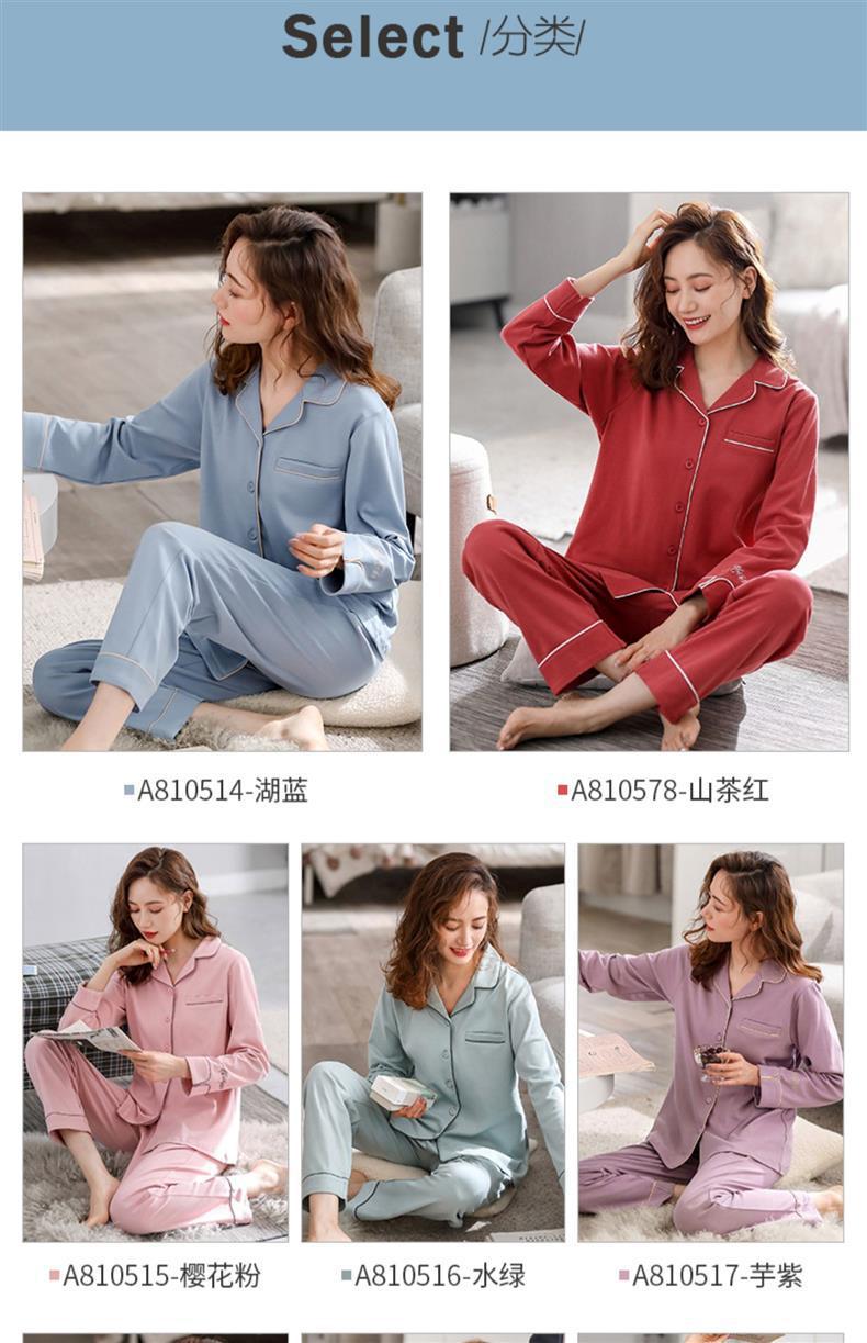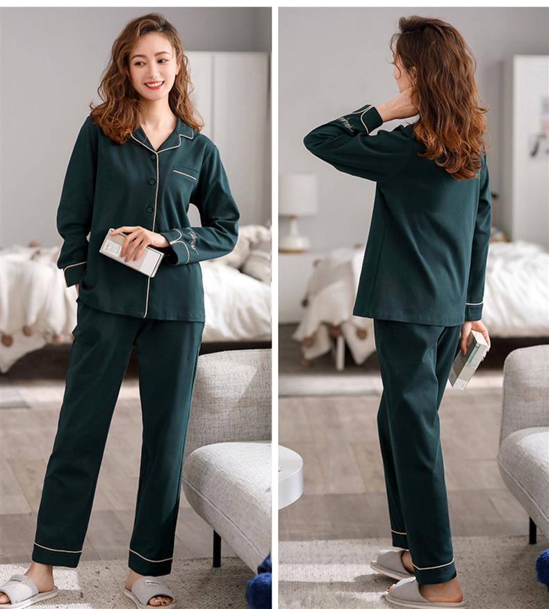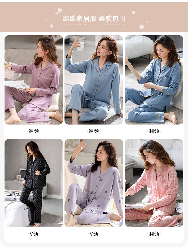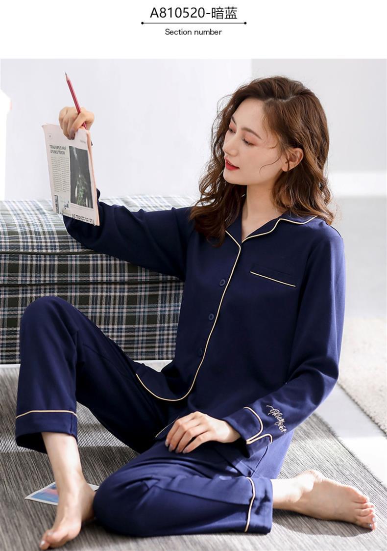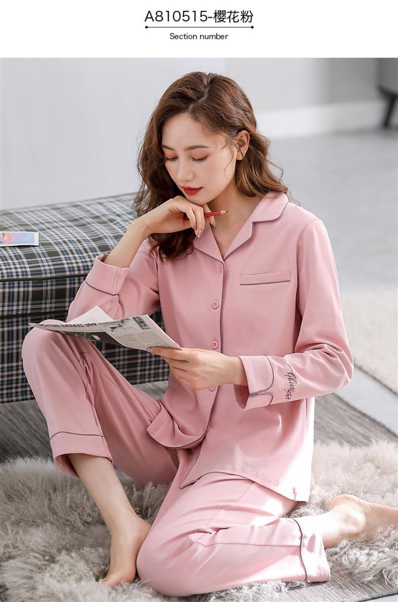 여성용 잠옷 봄과 가을 100% 면 긴 소매 홈 웨어 얇은 봄과 여름 플러스 사이즈 세트스토어 가기