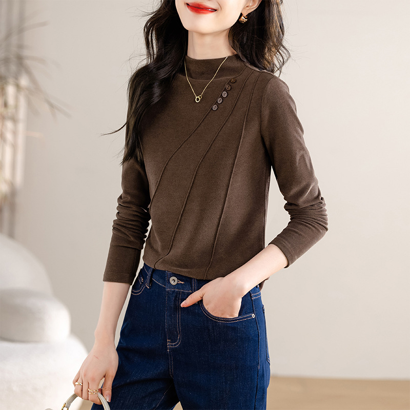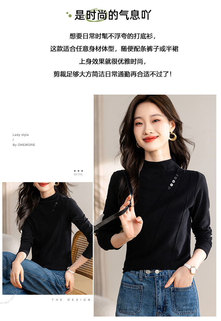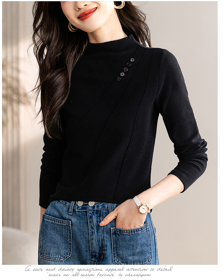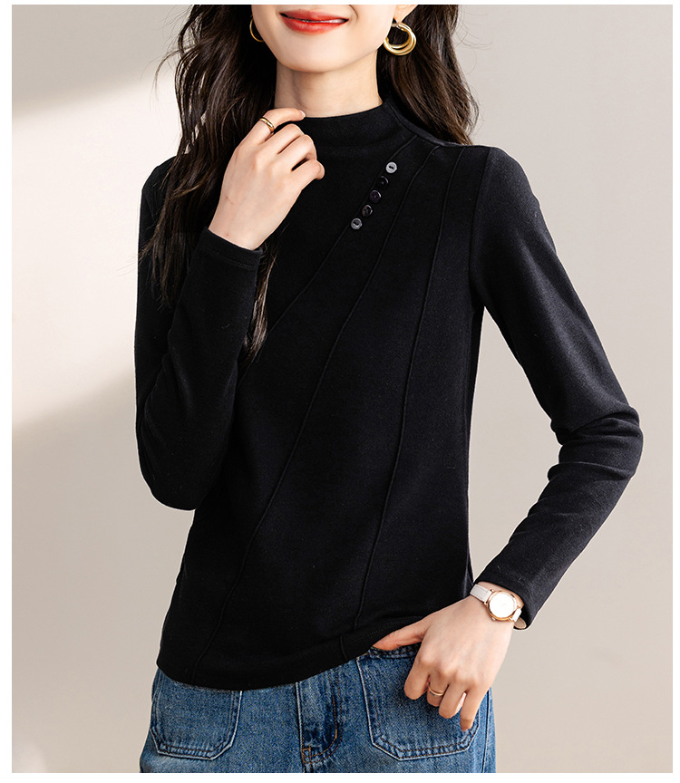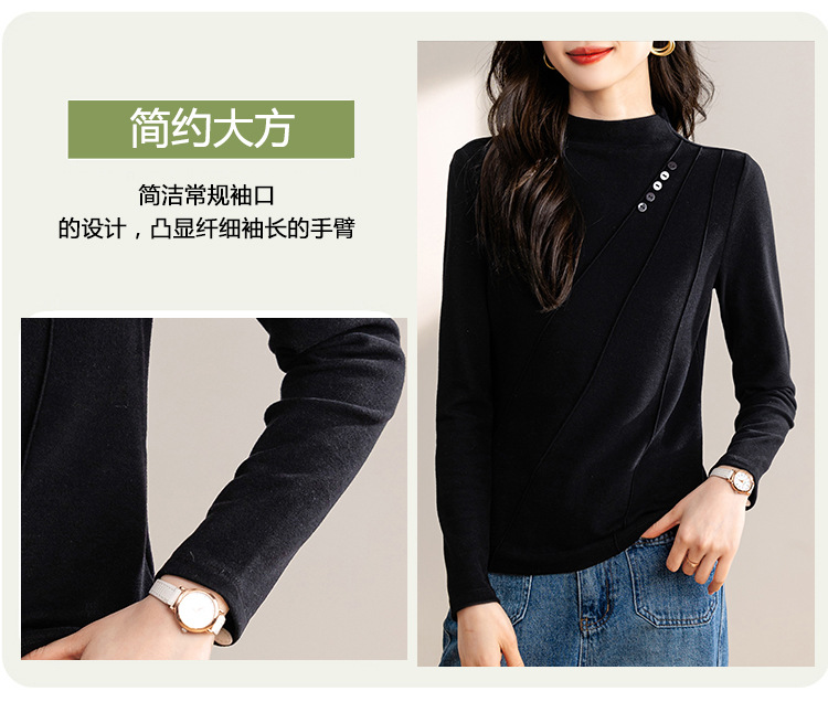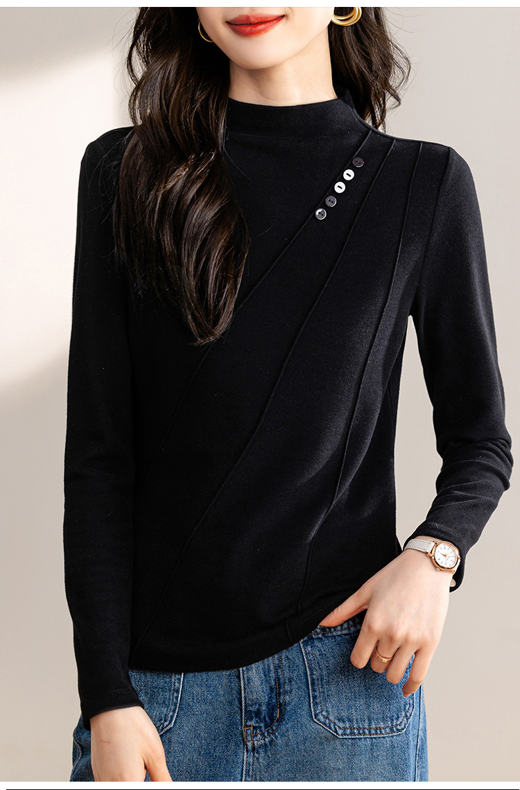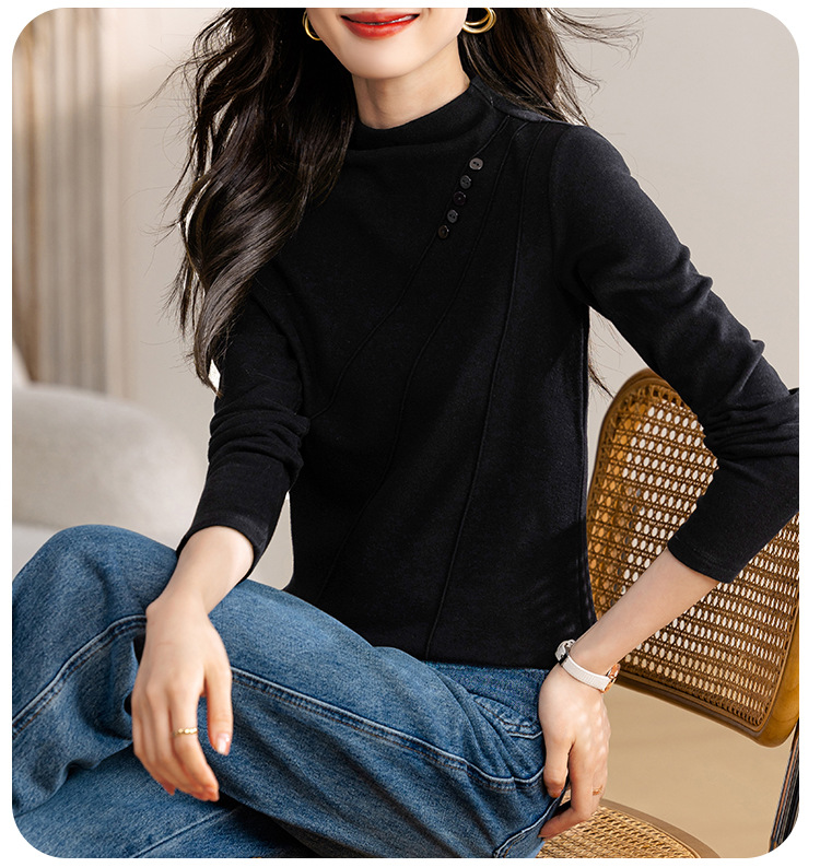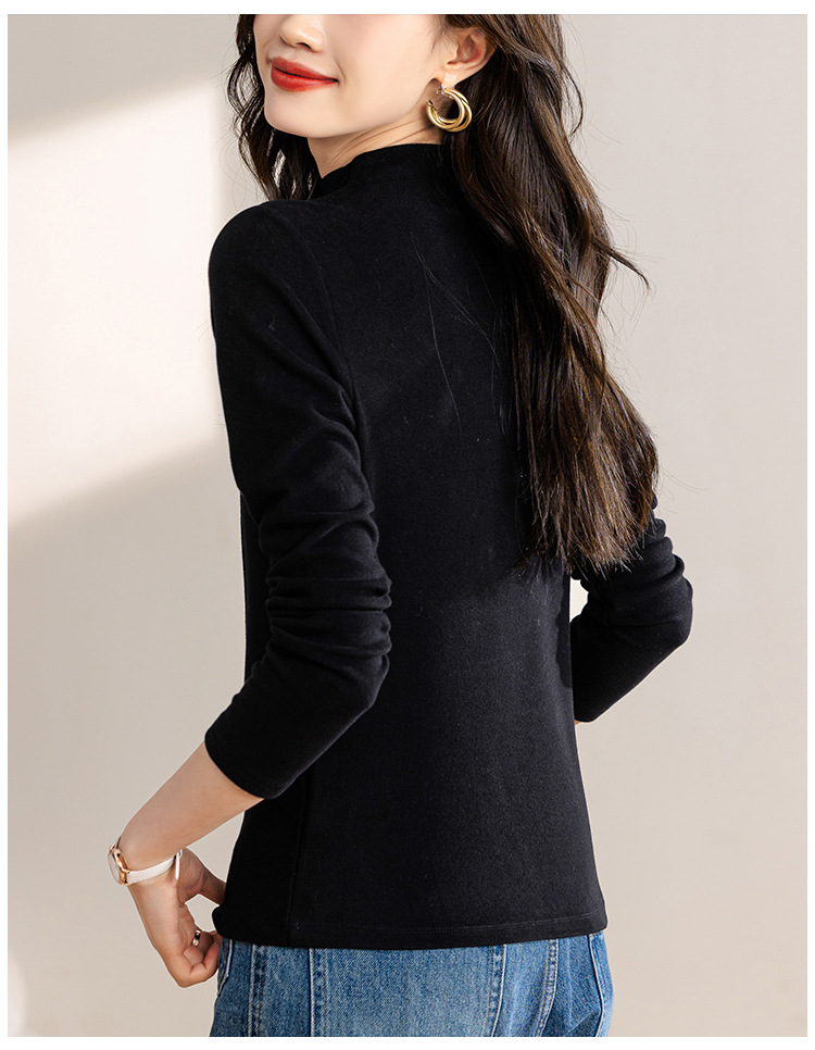 가을과 겨울 부드러운 왁스 같은 섬세한 양면 벨벳 긴팔 티셔츠 하프 하이 칼라 블랙베이스 셔츠 여성 탑 2023스토어 가기