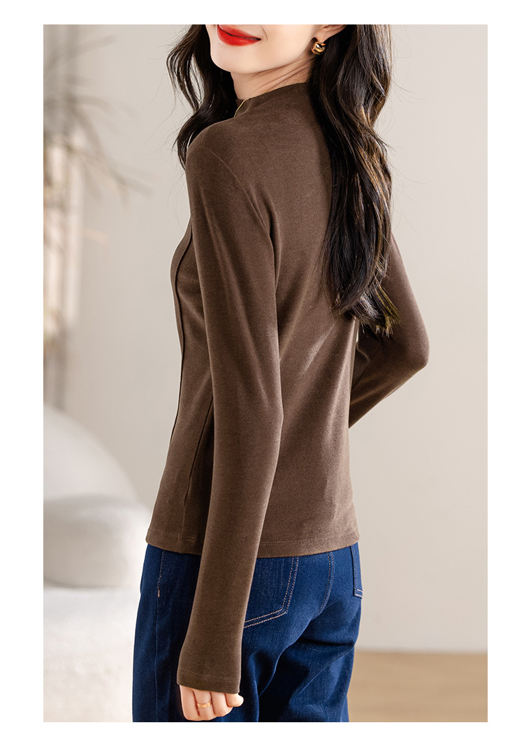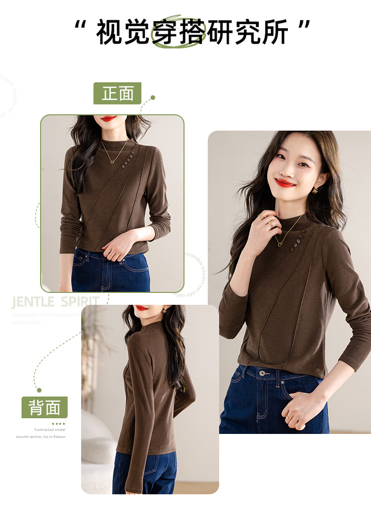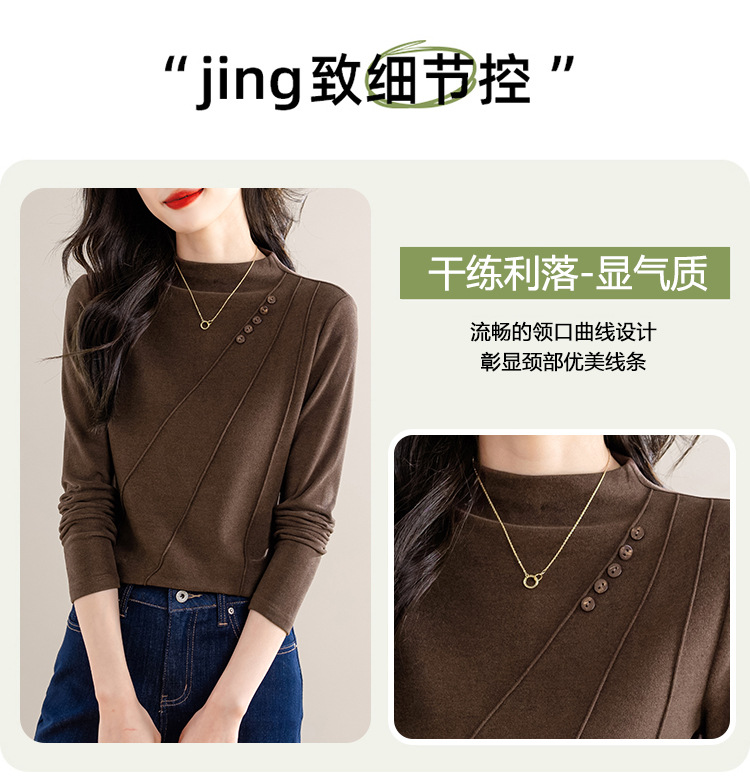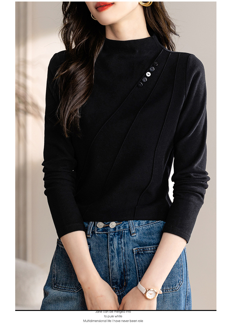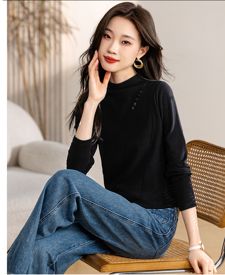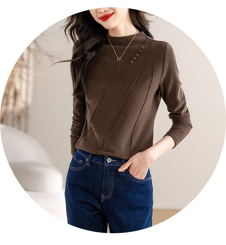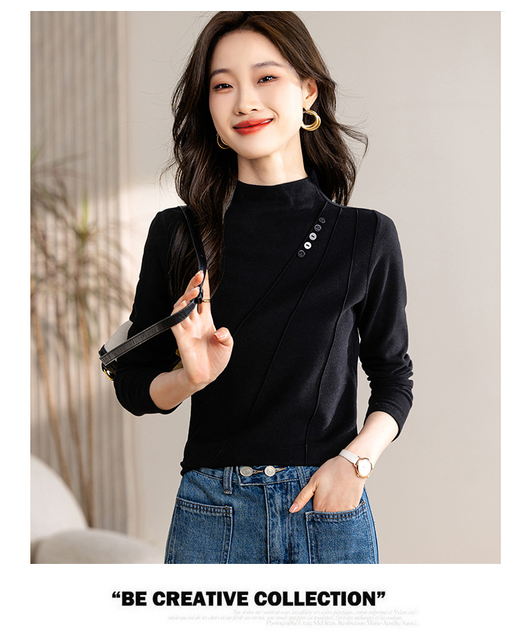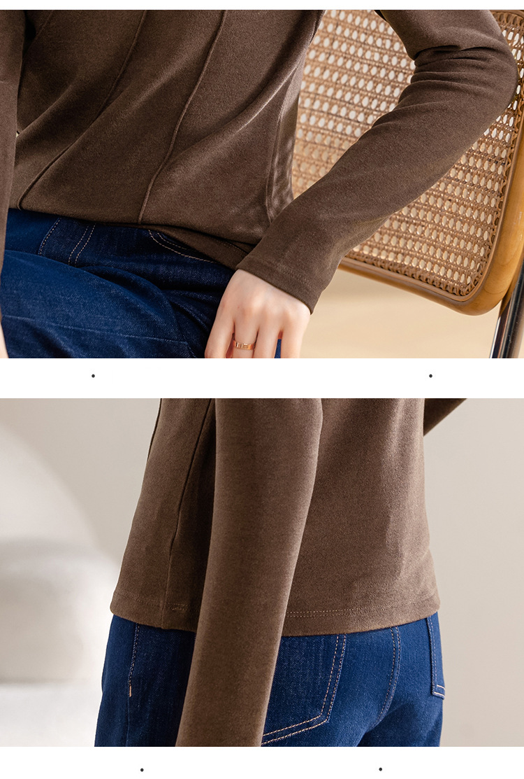가을과 겨울 부드러운 왁스 같은 섬세한 양면 벨벳 긴팔 티셔츠 하프 하이 칼라 블랙베이스 셔츠 여성 탑 2023스토어 가기