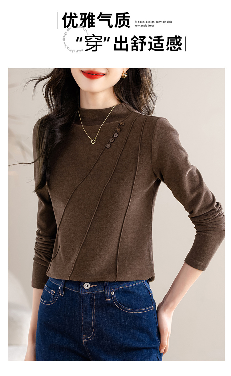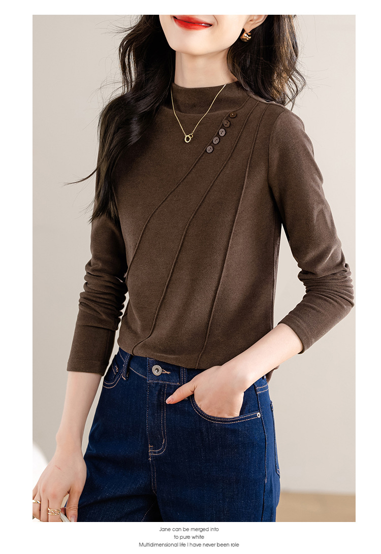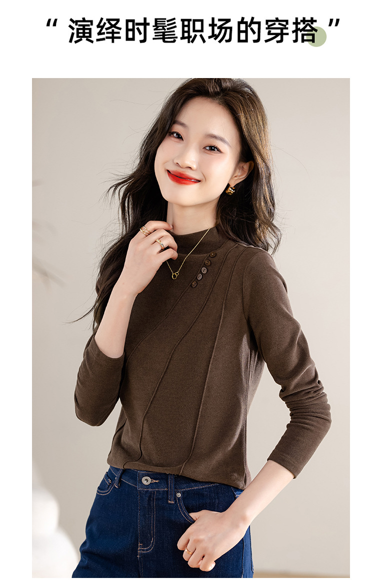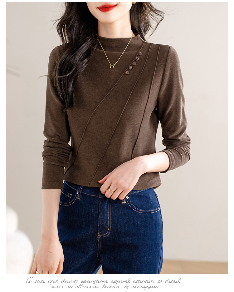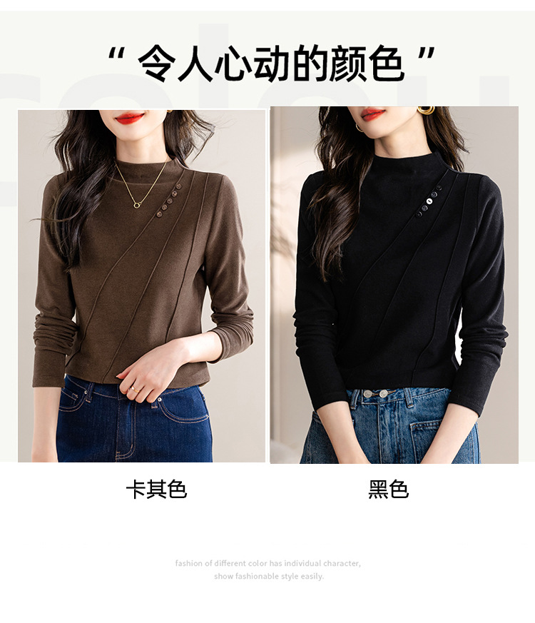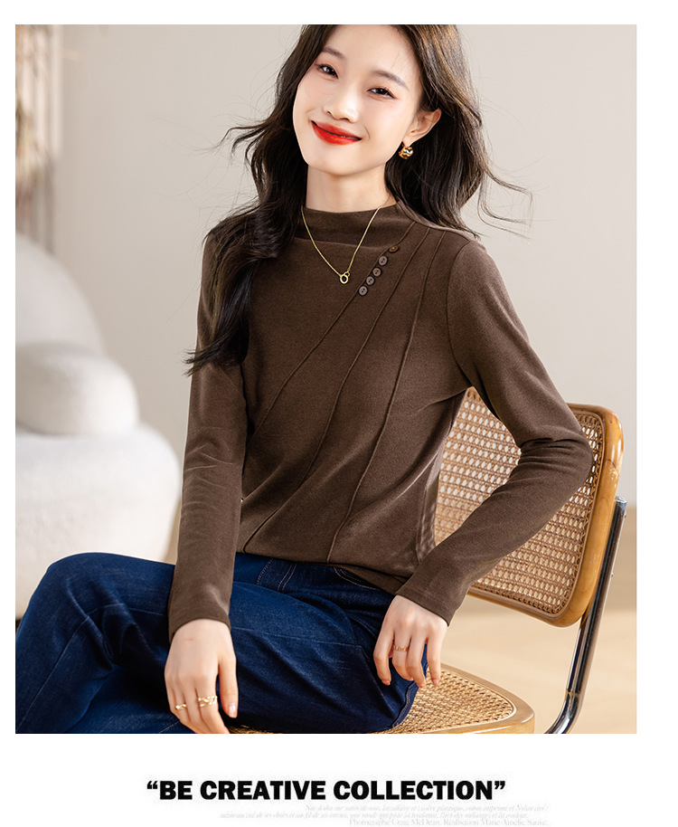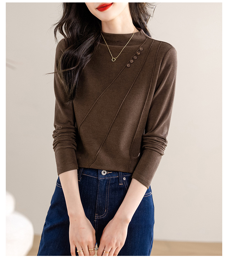 가을과 겨울 부드러운 왁스 같은 섬세한 양면 벨벳 긴팔 티셔츠 하프 하이 칼라 블랙베이스 셔츠 여성 탑 2023스토어 가기