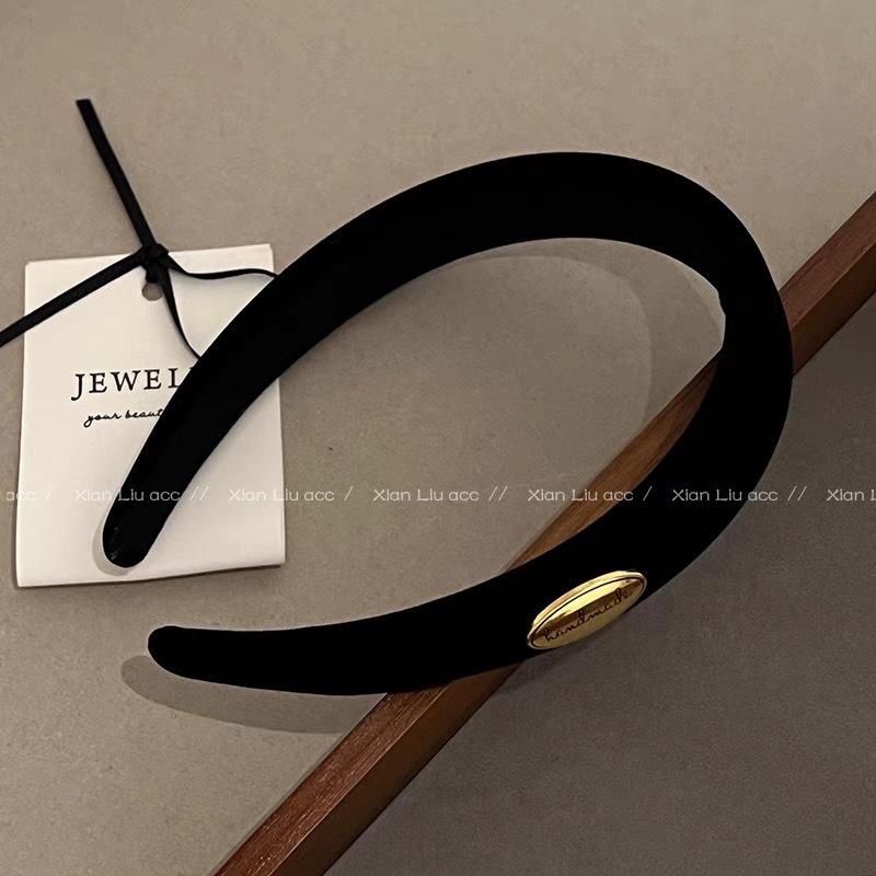 레터 골드 라벨 블랙 헤어 밴드 여성의 2023 새로운 워시 페이스 압력 벨벳 헤드 밴드 고급 센스 외국 스타일 패션 헤드웨어