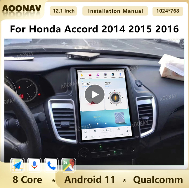 Android 11 Car Radio For Honda Accord 2014 2015 2016 Qualcomm Tesla Style Screen GPS Navigation Multimedia Player Carplay Unit