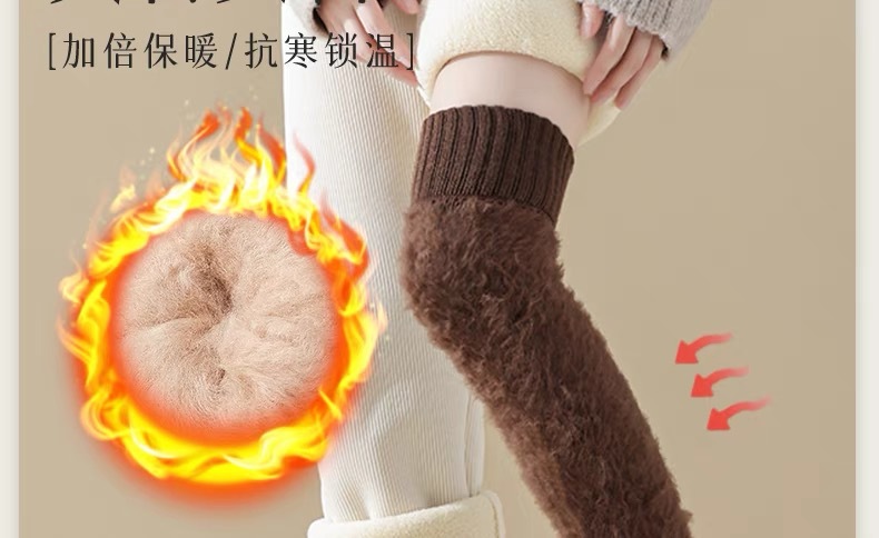 가을과 겨울 기모 두꺼운 무릎 위 양말 여성용 솔질 양털 따뜻한 허벅지 양말 캐시미어 바닥 양말 무릎 패드 홈 스타킹스토어 가기