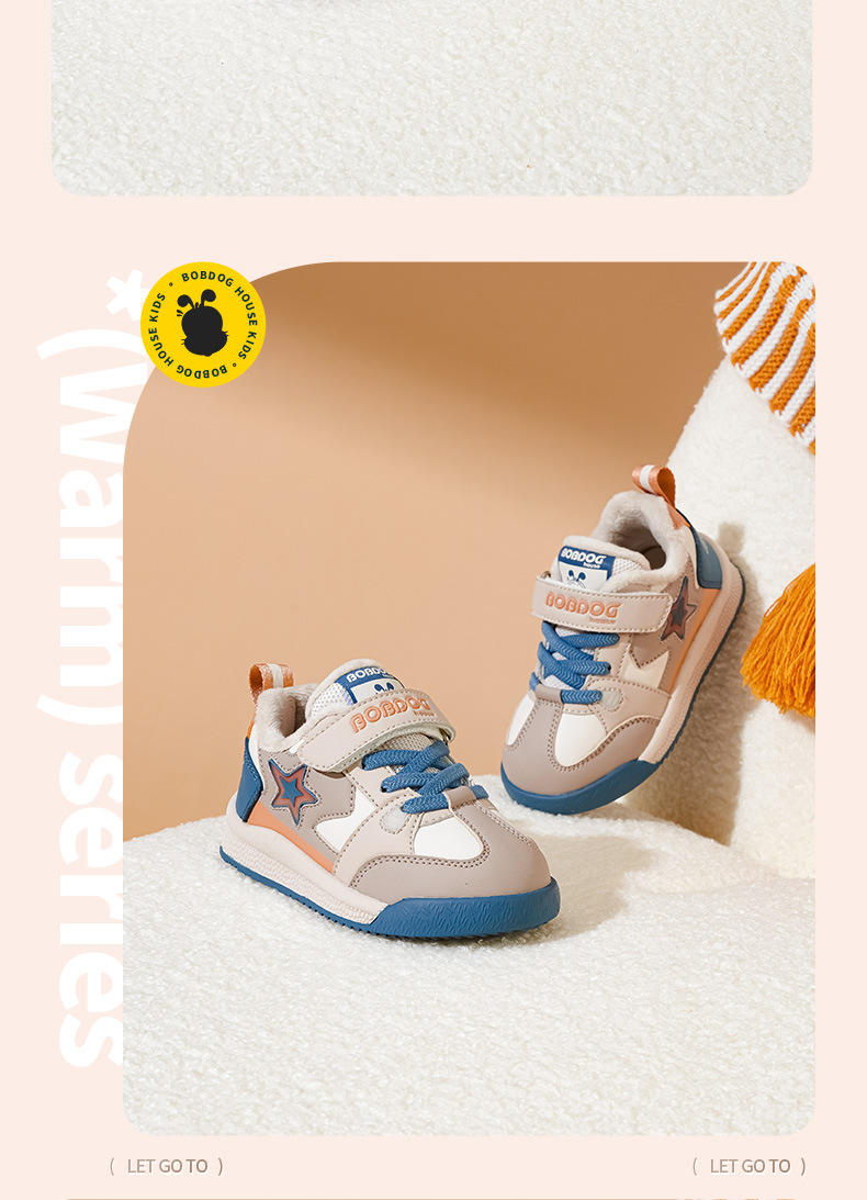 Babu beans 2023 겨울 새로운 기모 기능 2 면 신발 캐주얼 미끄럼 방지 후크 및 루프 충격 흡수 내마모성 따뜻한 어린이 신발