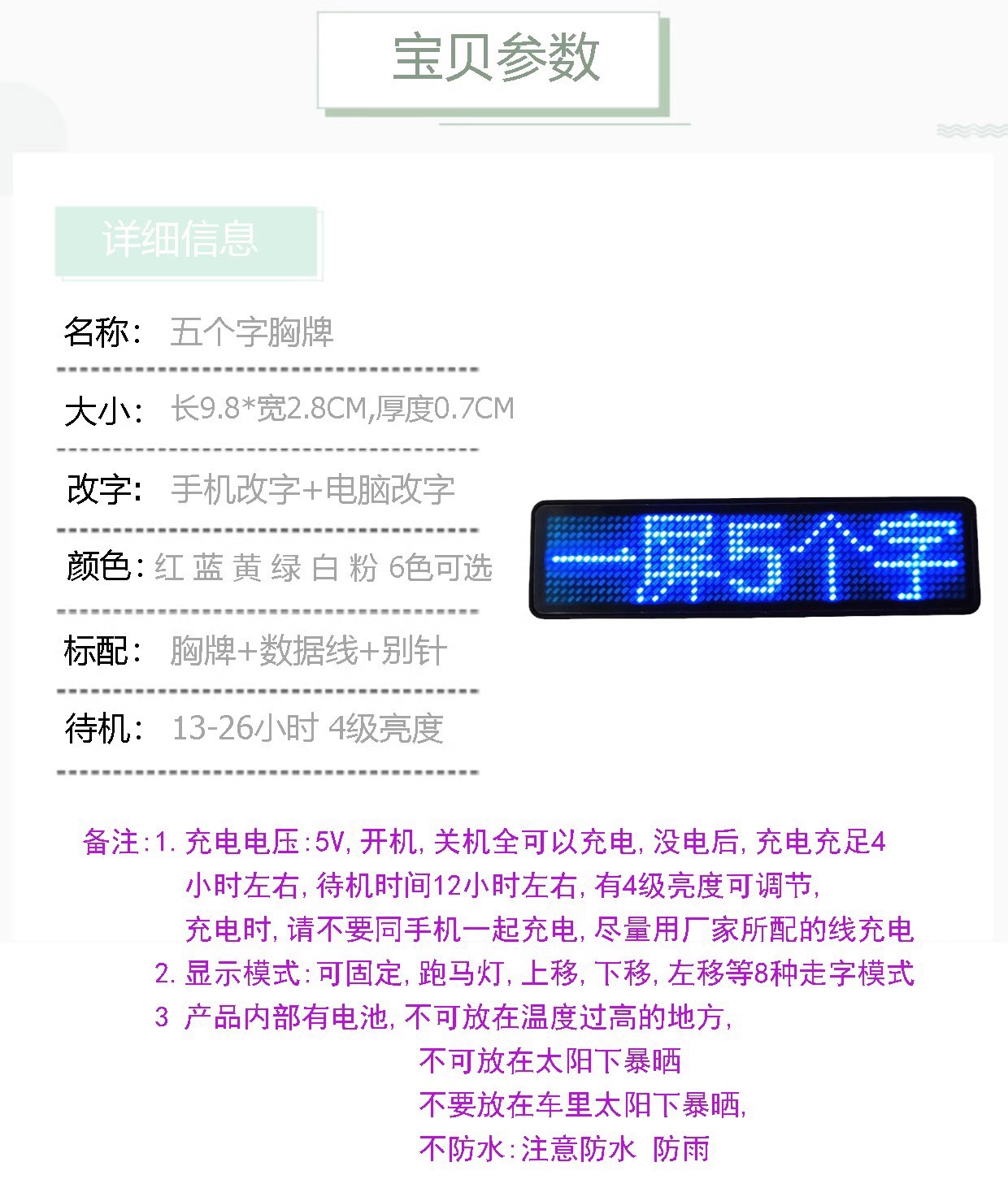 LED 이름표, 전자 스크롤 작업표, 운전용 발광 이름표, 바 KTV 콘서트 지원 라이트 플레이트 펜던트 이름표스토어 가기