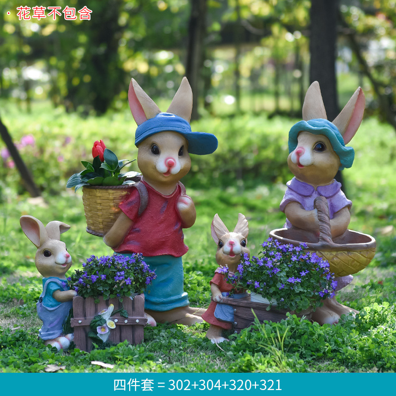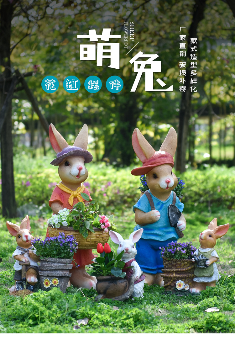 만화 토끼 화분 탱크 야외 동물 조각 정원 풍경 스케치 발코니 안뜰 유치원 장식 장식품