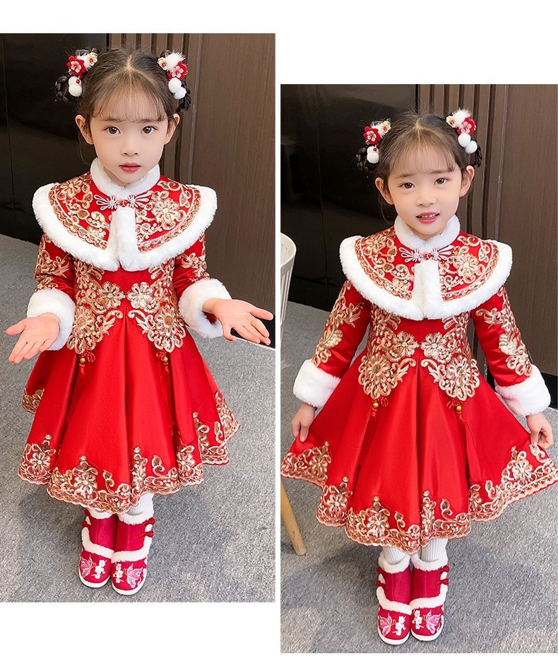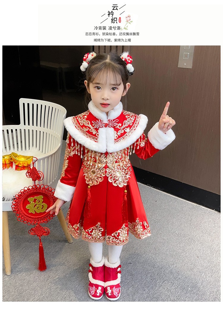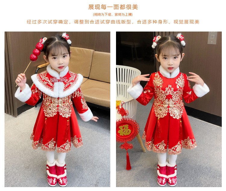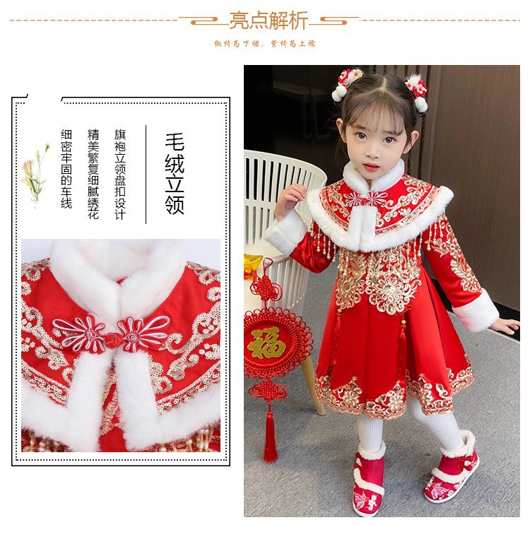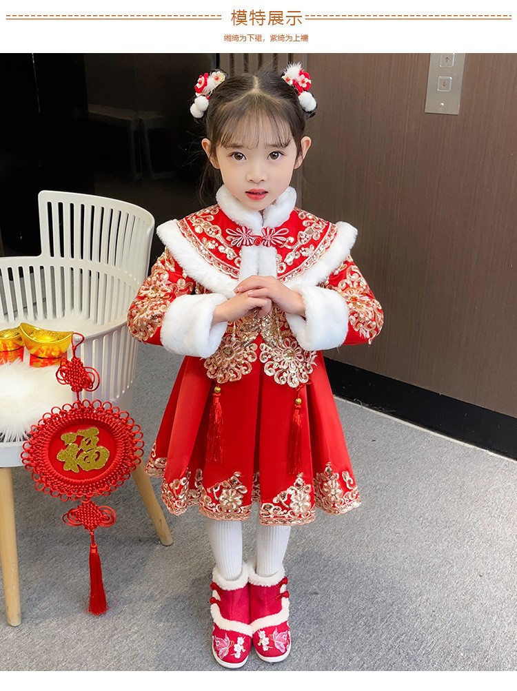 새해 옷 소녀 겨울 옷 기모 2023 새로운 중국 스타일 어린이 당나라 세트 축제 아기 새해 원피스스토어 가기