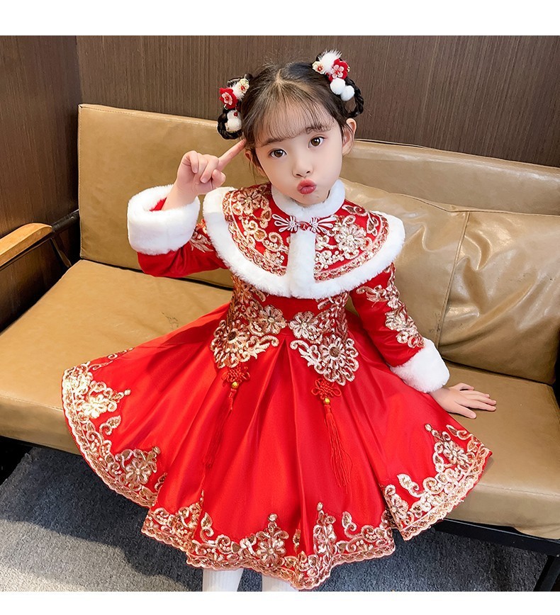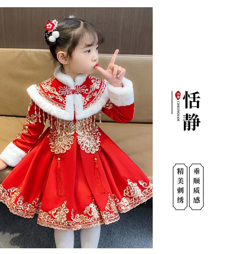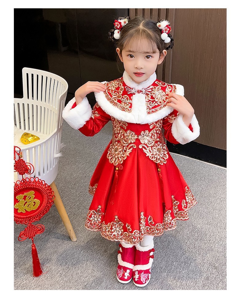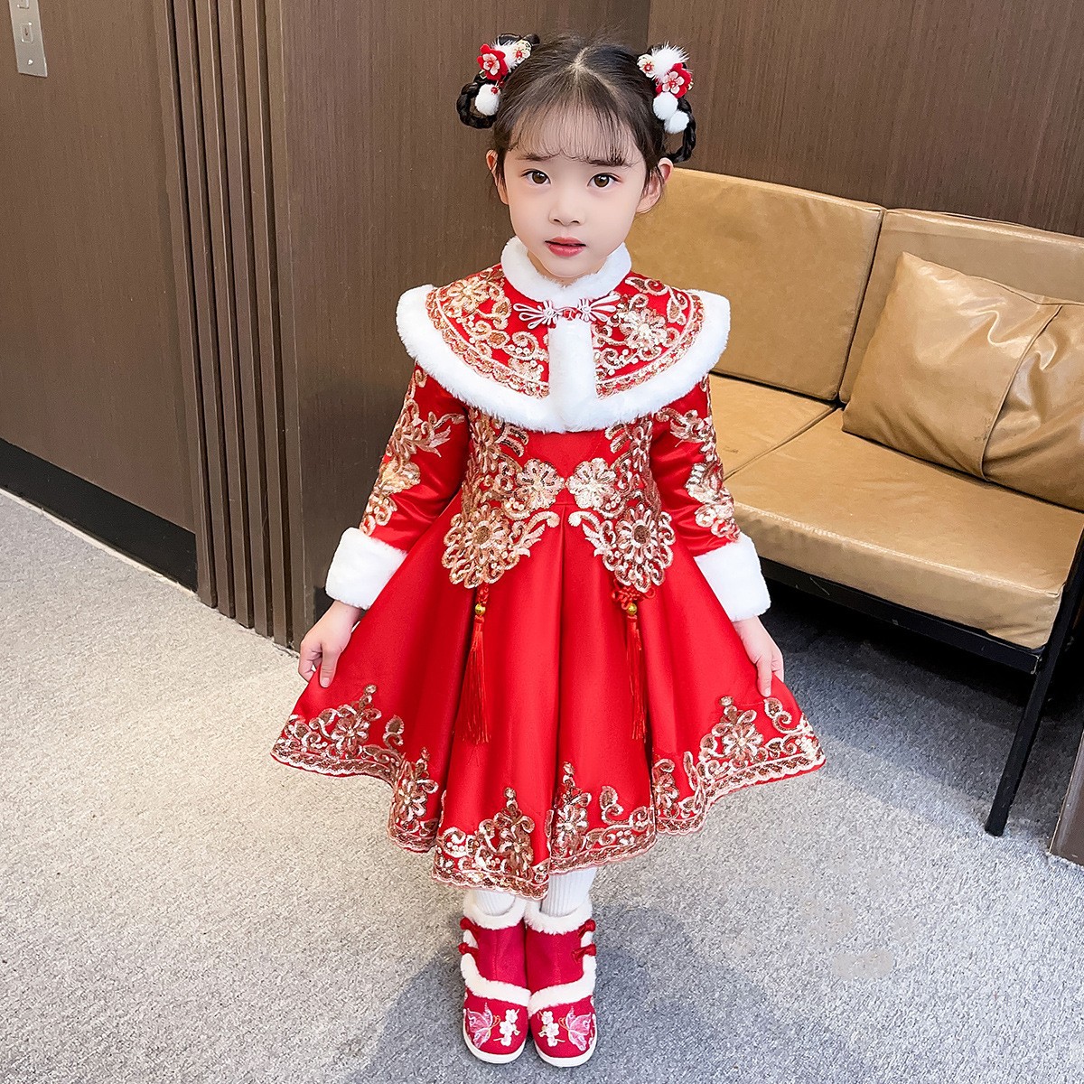 새해 옷 소녀 겨울 옷 기모 2023 새로운 중국 스타일 어린이 당나라 세트 축제 아기 새해 원피스스토어 가기
