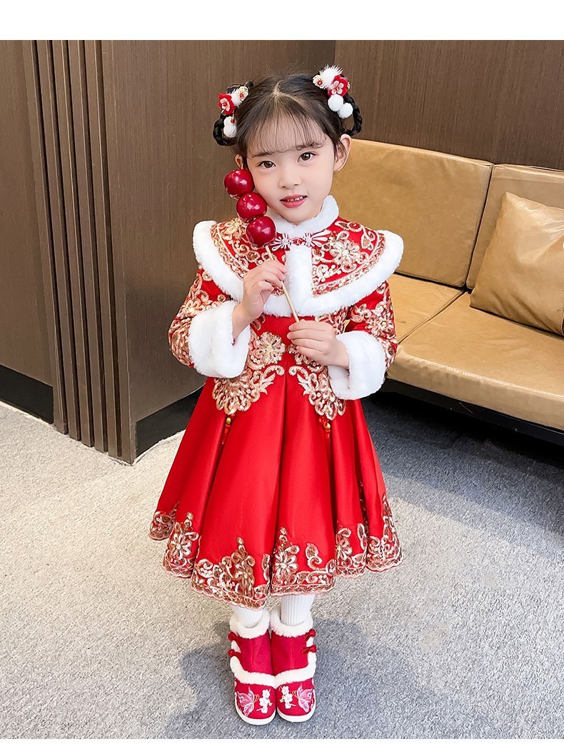 새해 옷 소녀 겨울 옷 기모 2023 새로운 중국 스타일 어린이 당나라 세트 축제 아기 새해 원피스