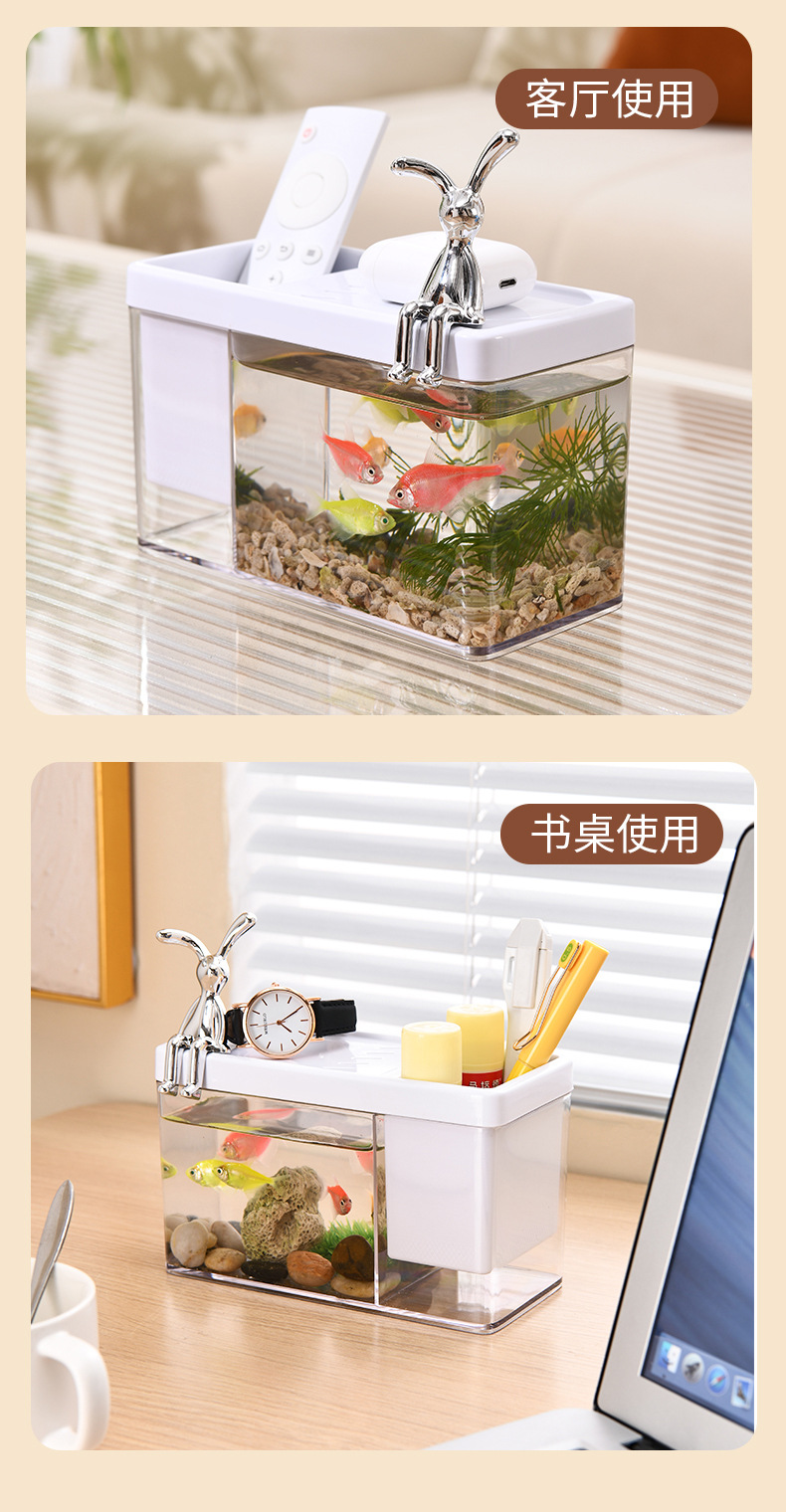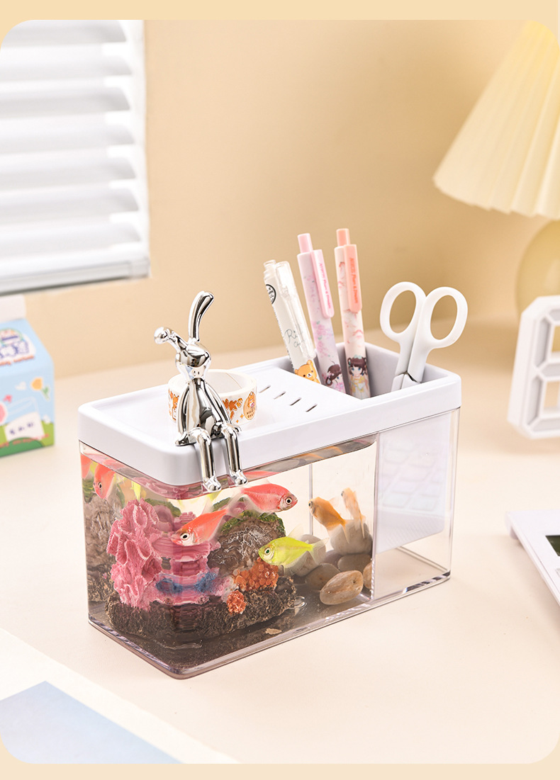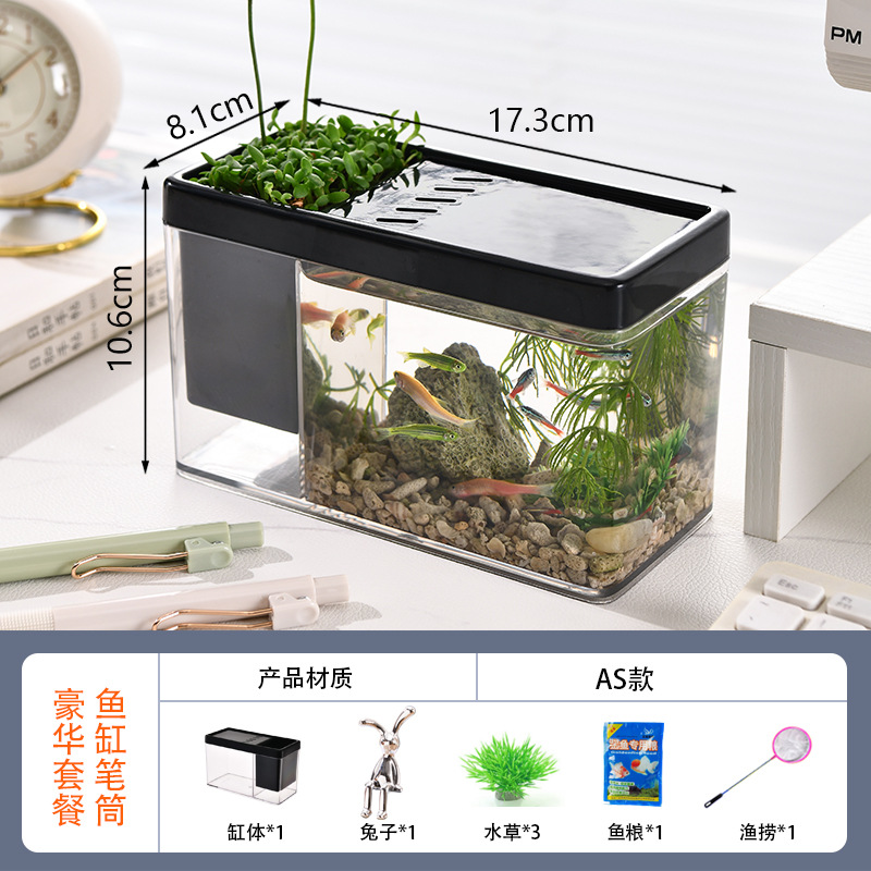 데스크탑 마이크로 작은 풍경 어항 투명 가정용 어항 창조적 인 학생 기숙사 펜 보관 작은 어항
