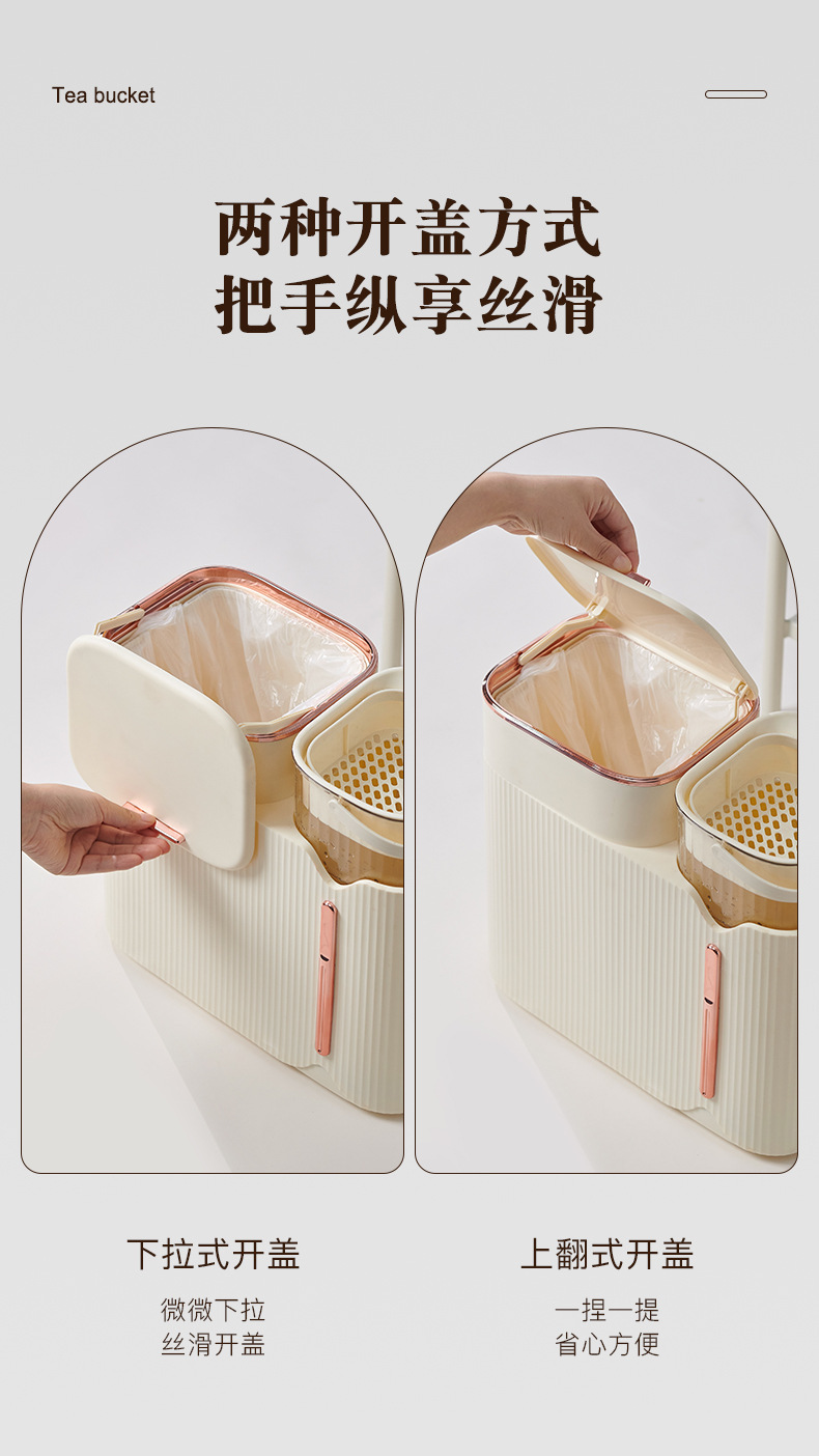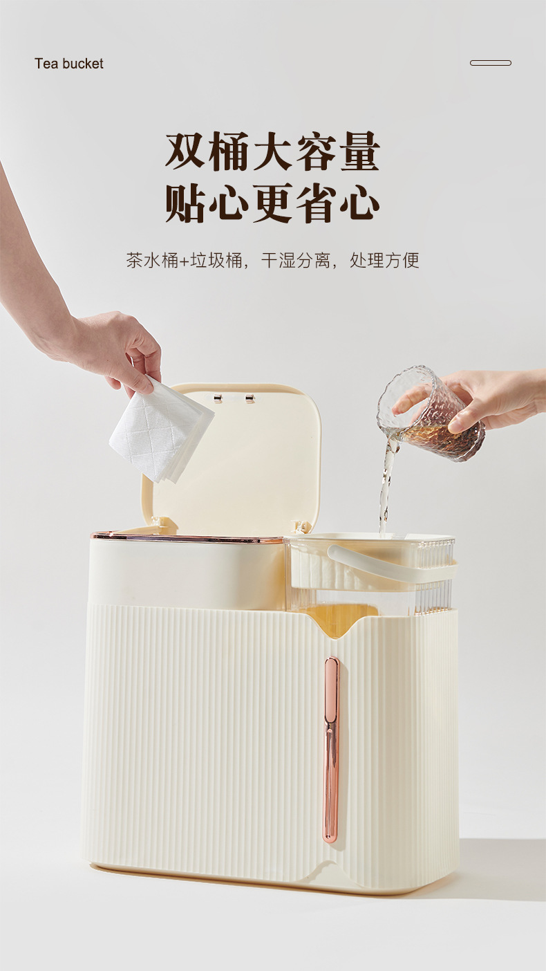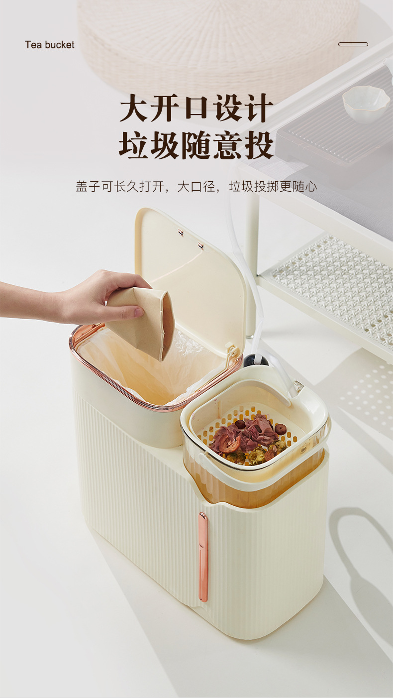 밀크 화이트 티 양동이 차 잔류 물통 가정용 건식 및 습식 분리 차 휴지통 차 필터링 간격 폐기물 양동이스토어 가기