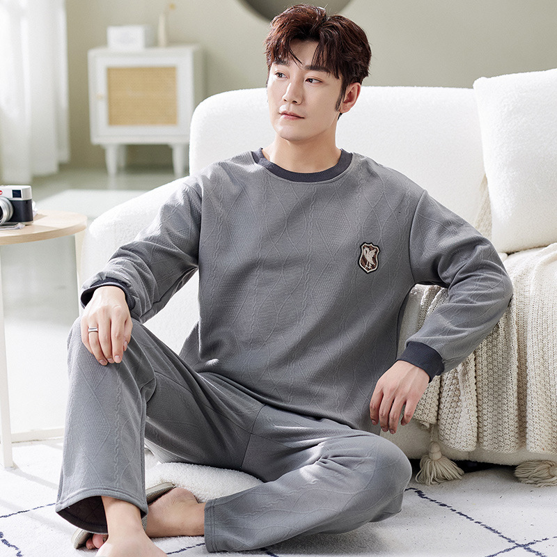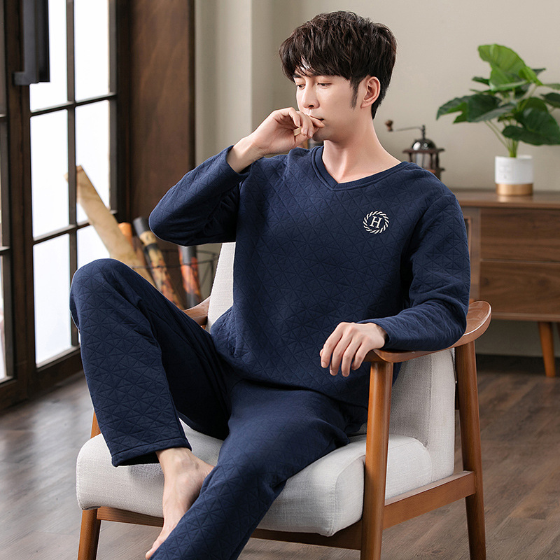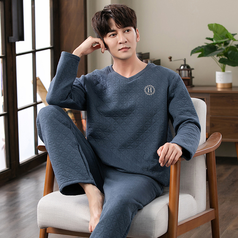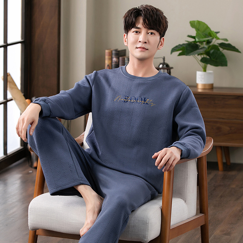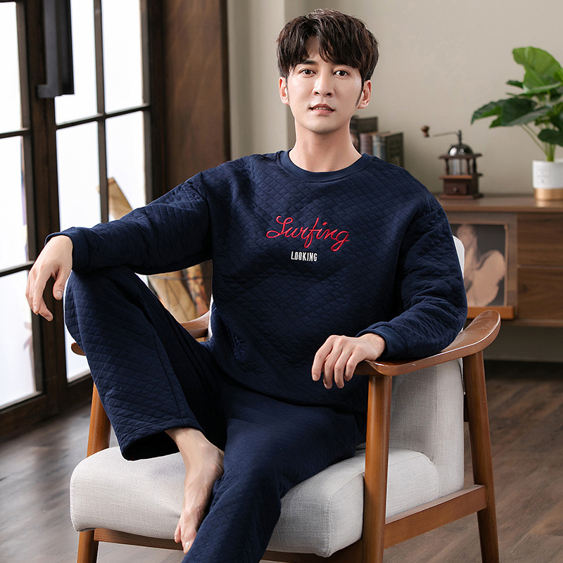 도매 잠옷 남자의 겨울 긴 소매 두꺼운 샌드위치 따뜻한 플러스 대형 청소년 가을과 겨울 가정 의류스토어 가기