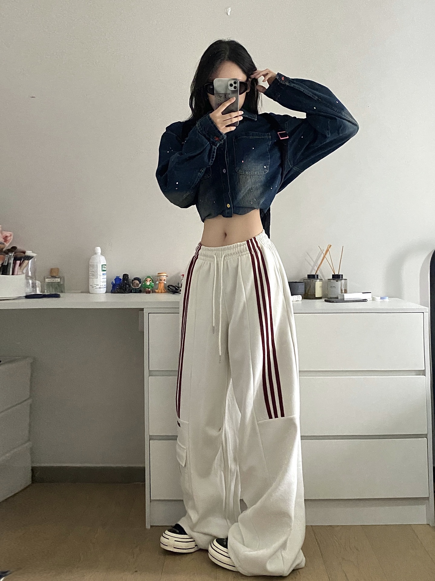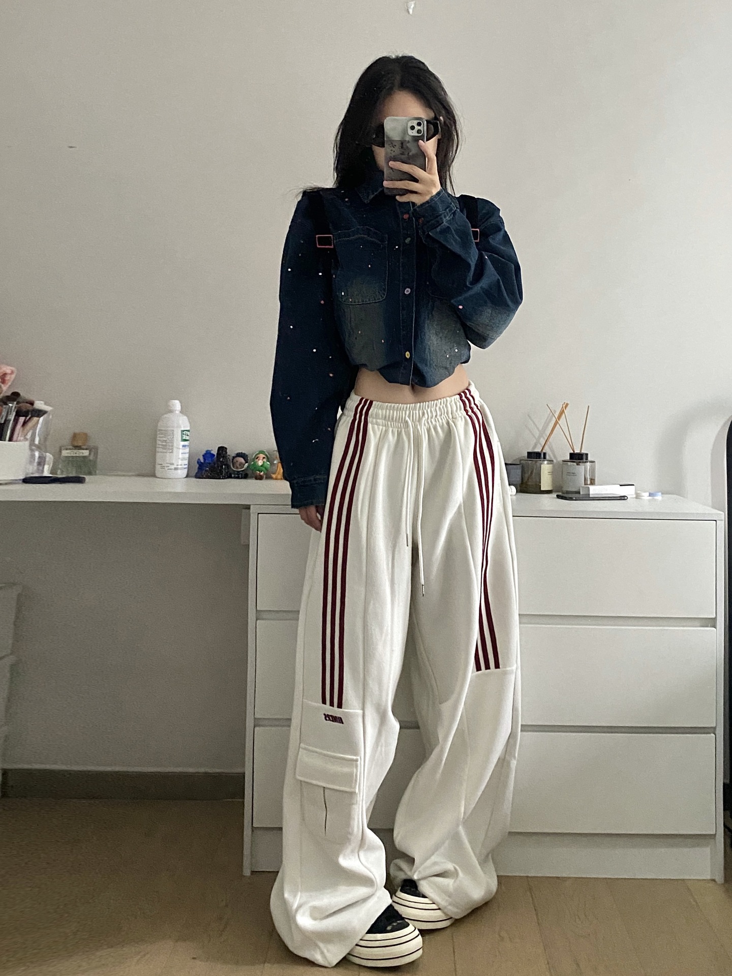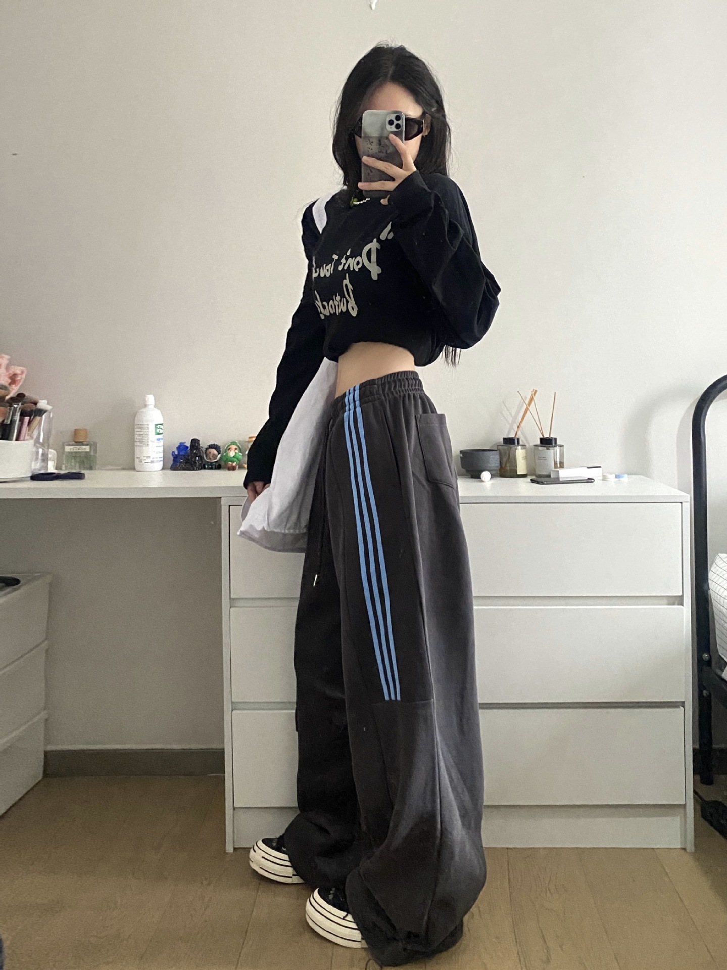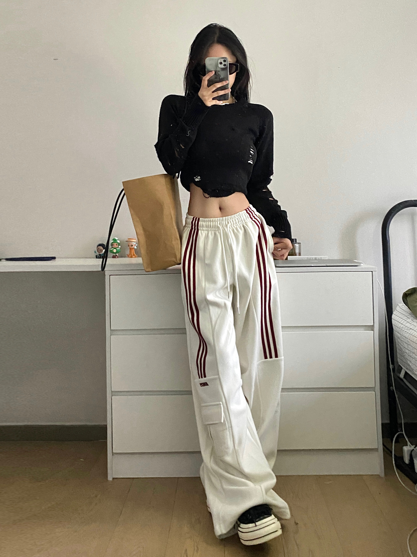 아메리칸 스타일 레트로 힙합 드로스트링 와이드 팬츠 여성용 하이 웨이스트 루즈한 캐주얼 스포츠 스트레이트 팬츠 스트리트 댄스 트렌디 팬츠스토어 가기